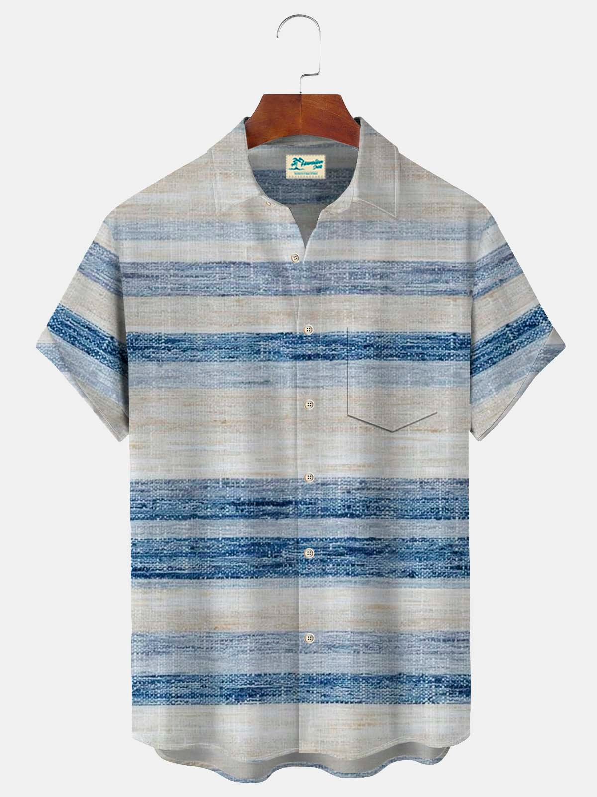 Alohadaddy Textured Blue Striped Casual Short Sleeve Shirt Blend Aloha Camp Pocket Button-Down Shirt Big Tall
