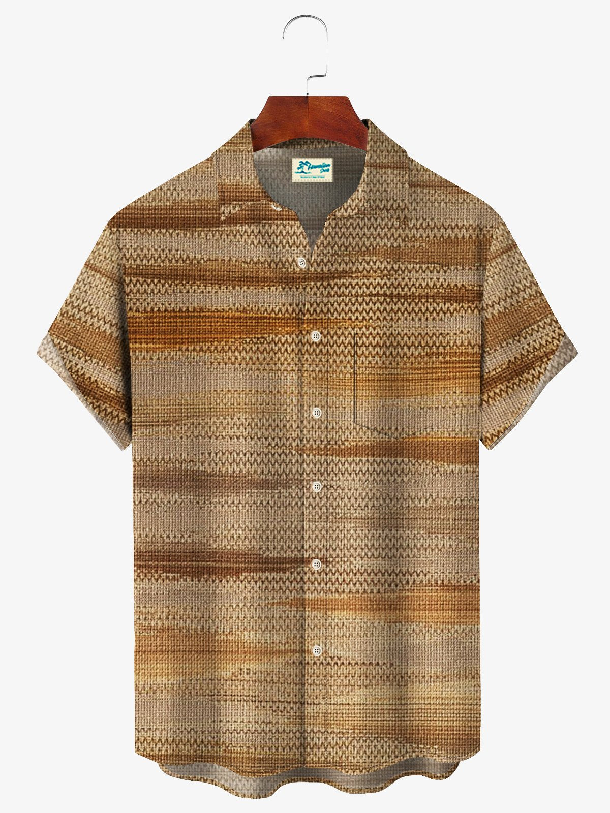 Alohadaddy Textured Men's Hawaiian Shirt Stretch Aloha Pocket Cartoon Camping Shirt