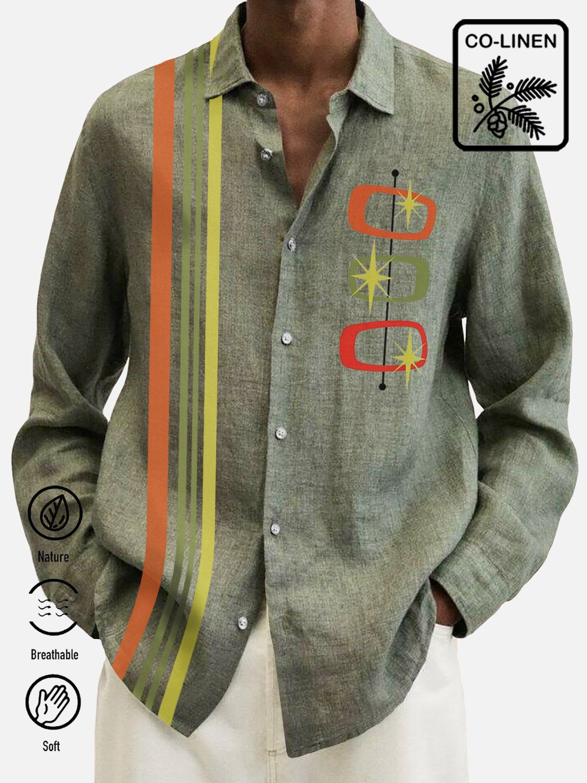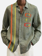 Chemises de bowling à manches longues pour hommes, hauts géométriques en coton et lin contrastés, grandes tailles