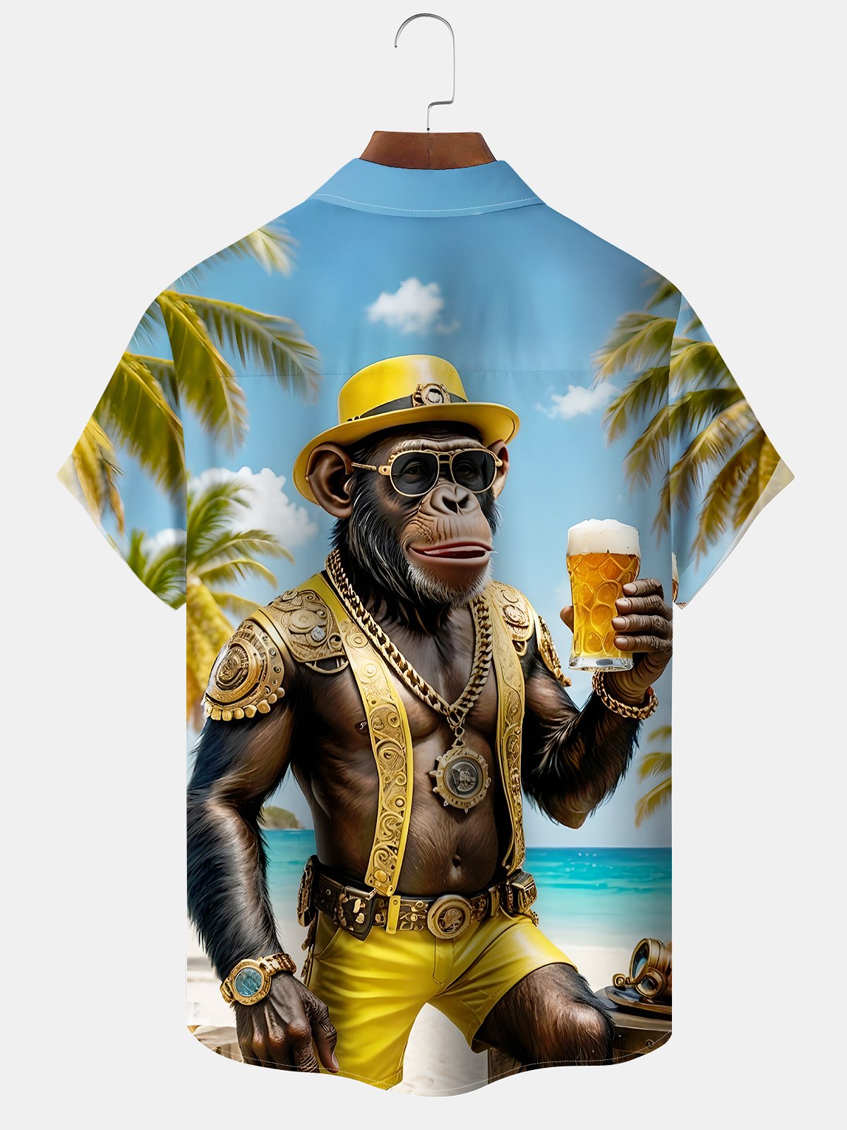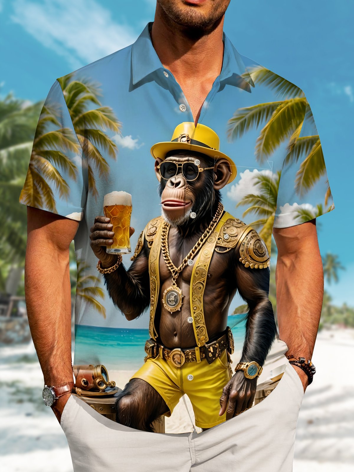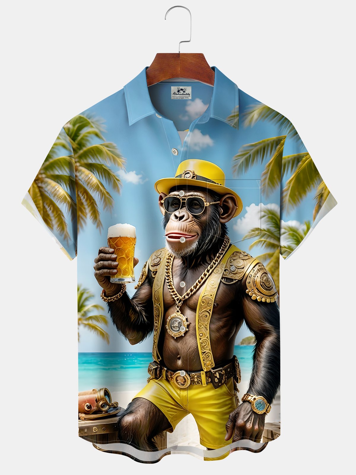 Alohadaddy Hawaiian Orangutan Vacation Print Art Button Cardigan Pocket Stretch Large Size Long Short Sleeve Shirt