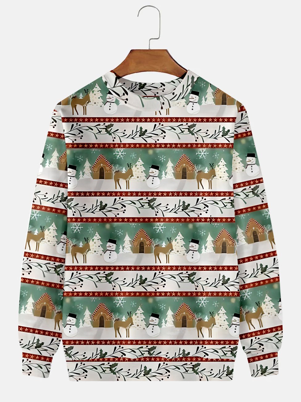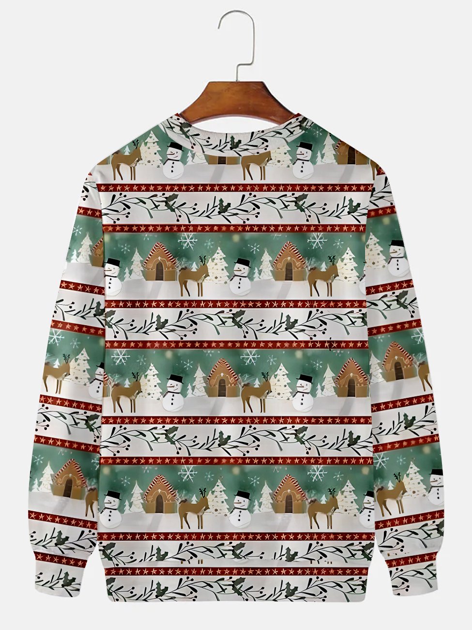Alohadaddy Christmas Snowman Animal Pattern Casual Long Sleeve Crew Neck Sweatshirt