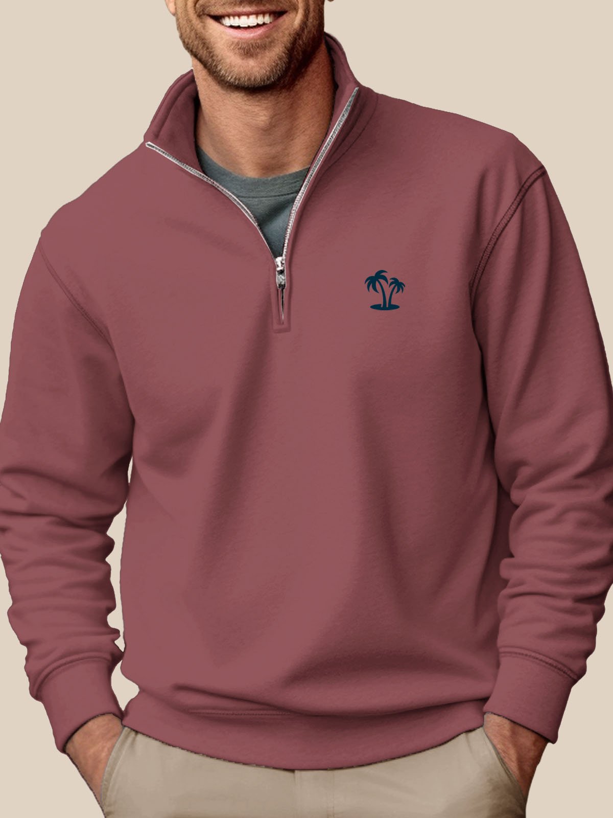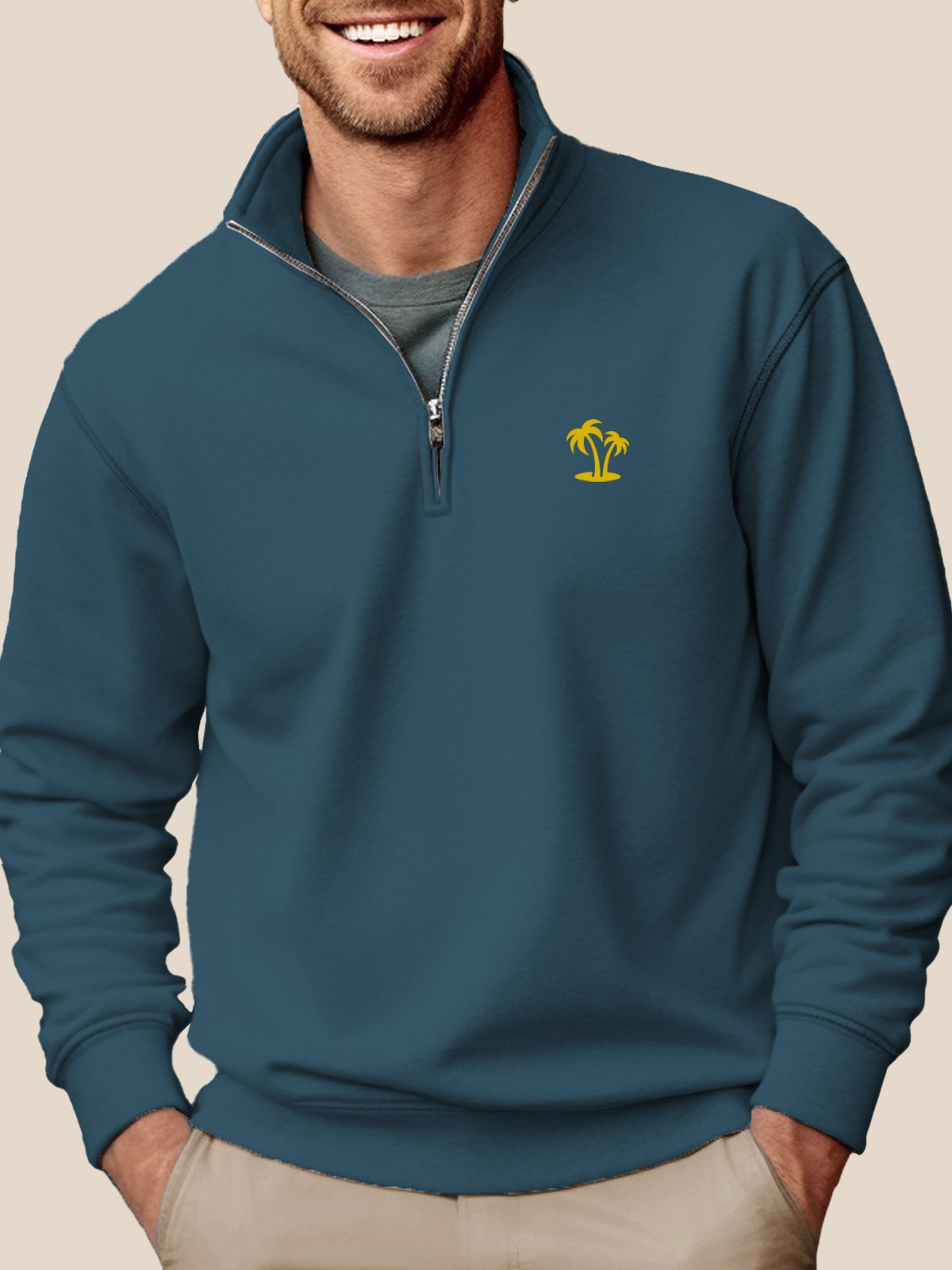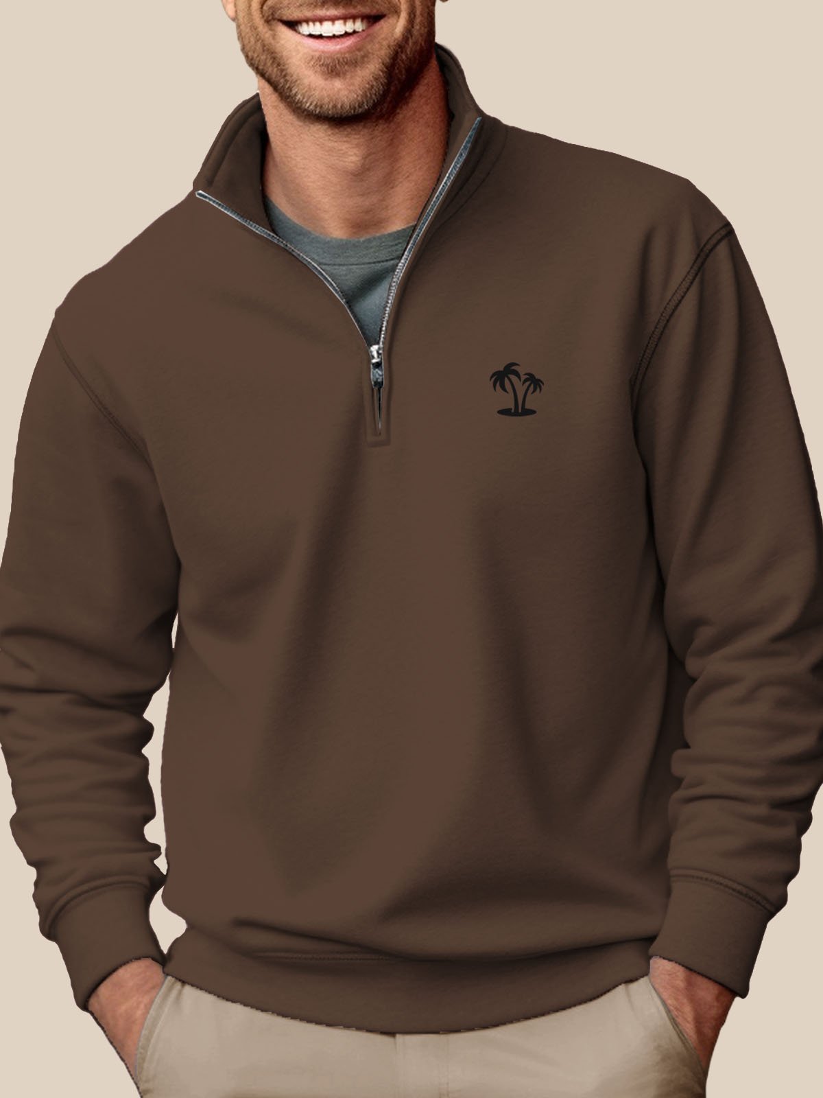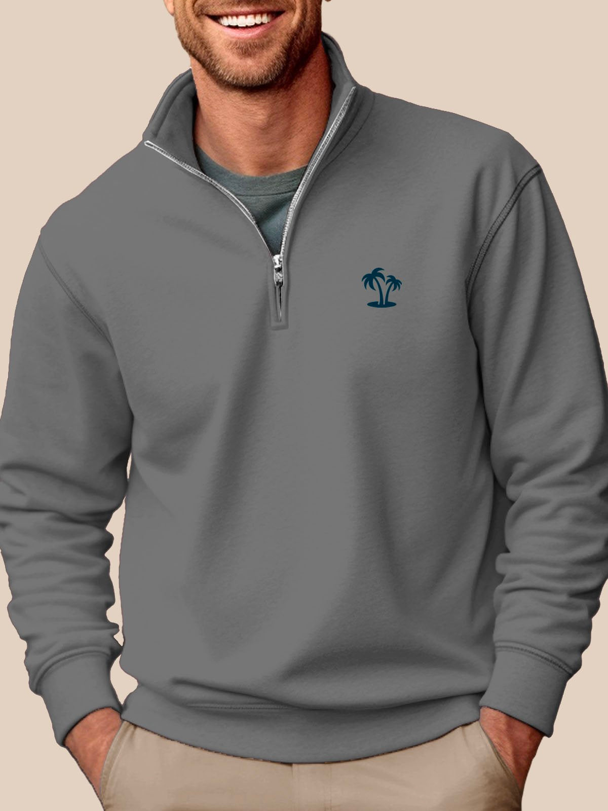 Sweat-shirt à col montant et demi-zip gris Alohadaddy pour homme, facile à porter, extensible, grande taille, pour les camps de vacances