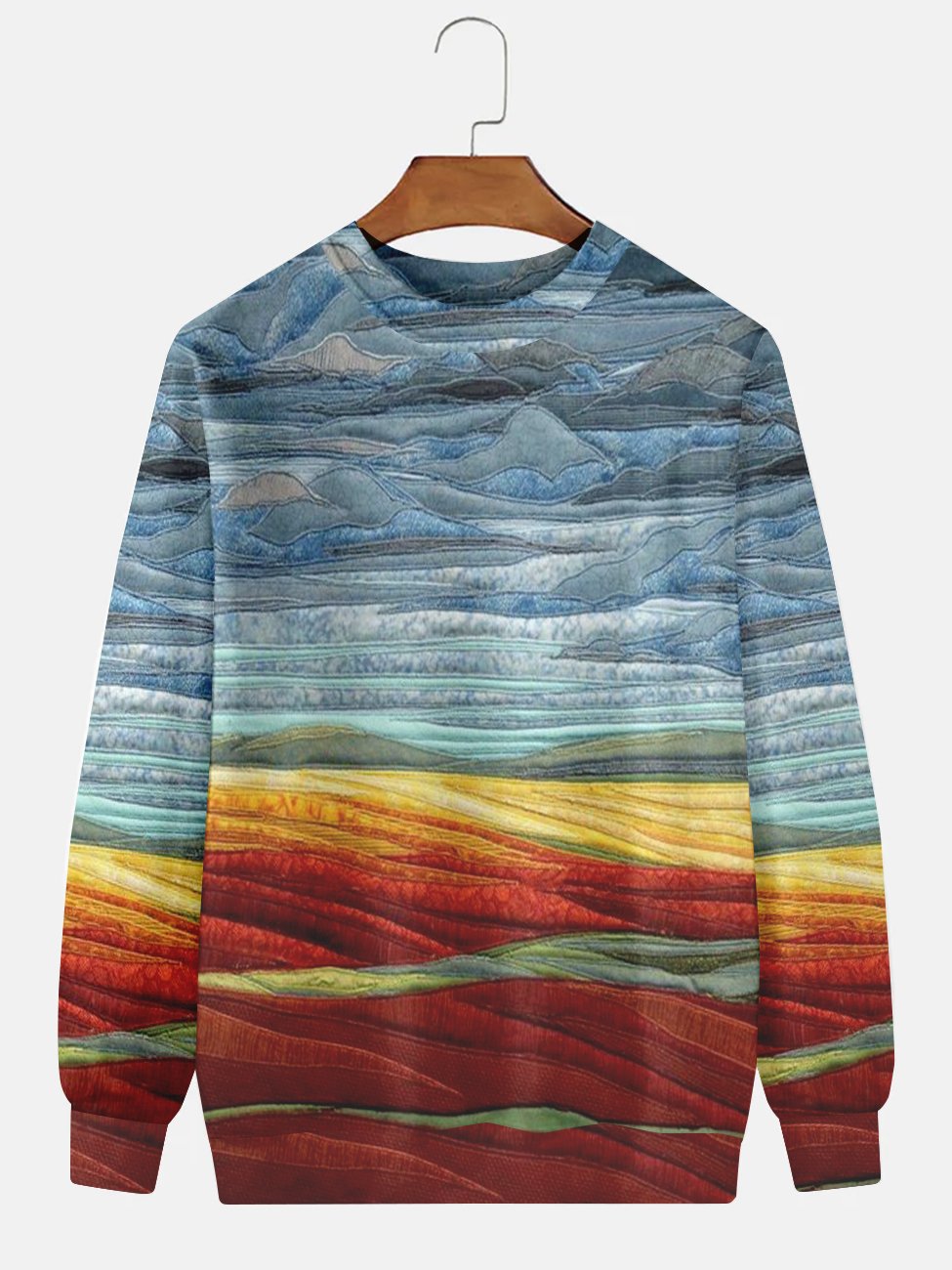 Sweat-shirt décontracté à manches longues et col ras du cou avec imprimé paysage Alohadaddy