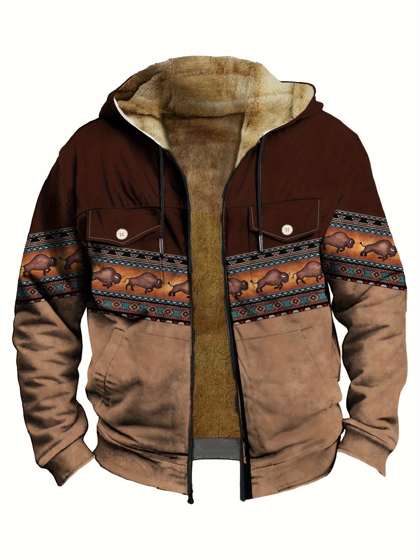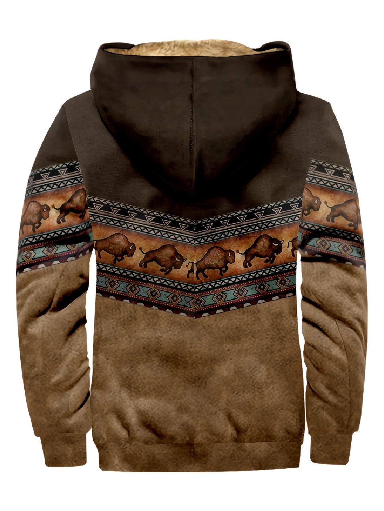 Alohadaddy Plus Velvet Retro Ethnic Hooded Zipper Long Sleeve Cotton Jacket