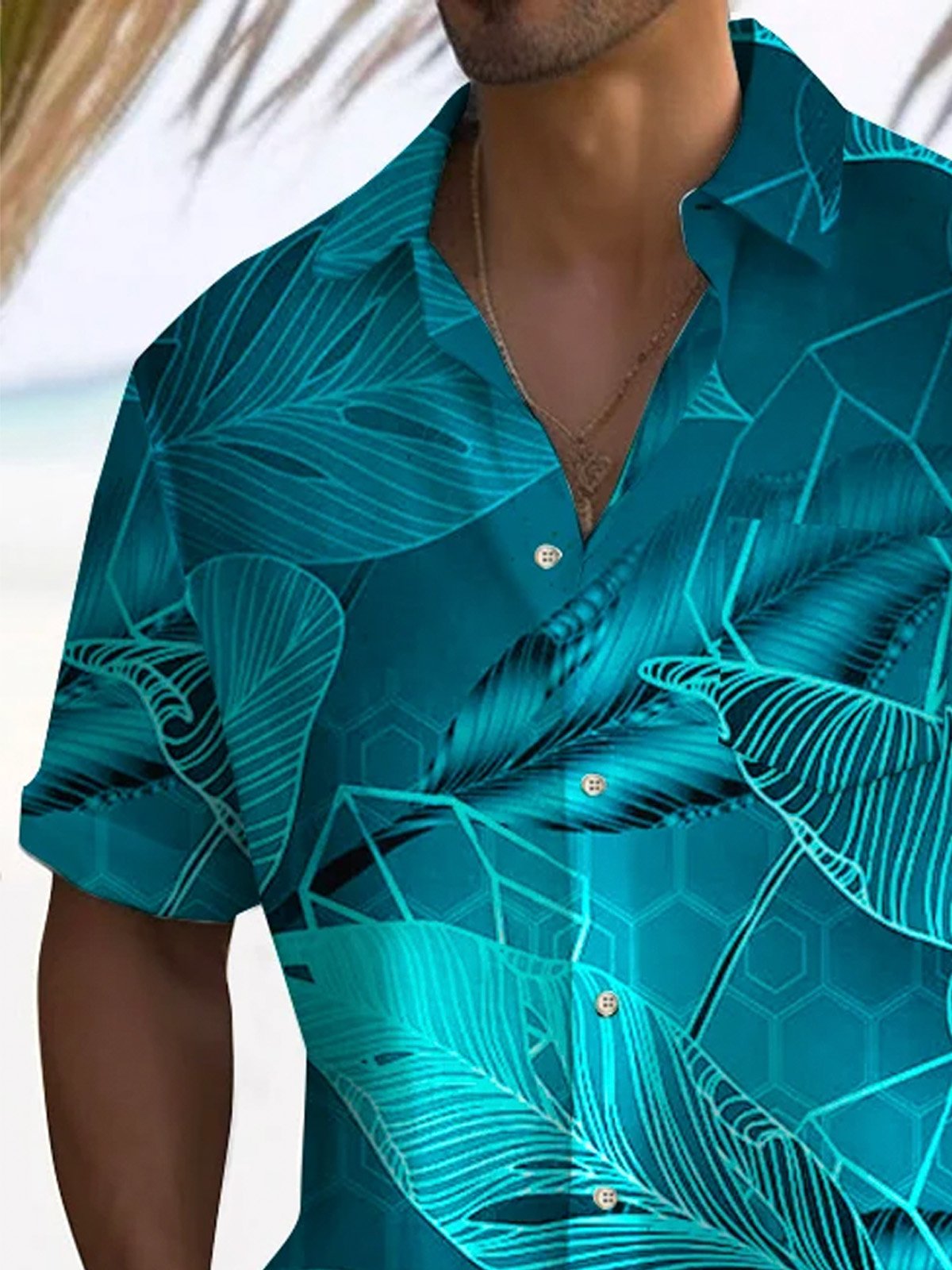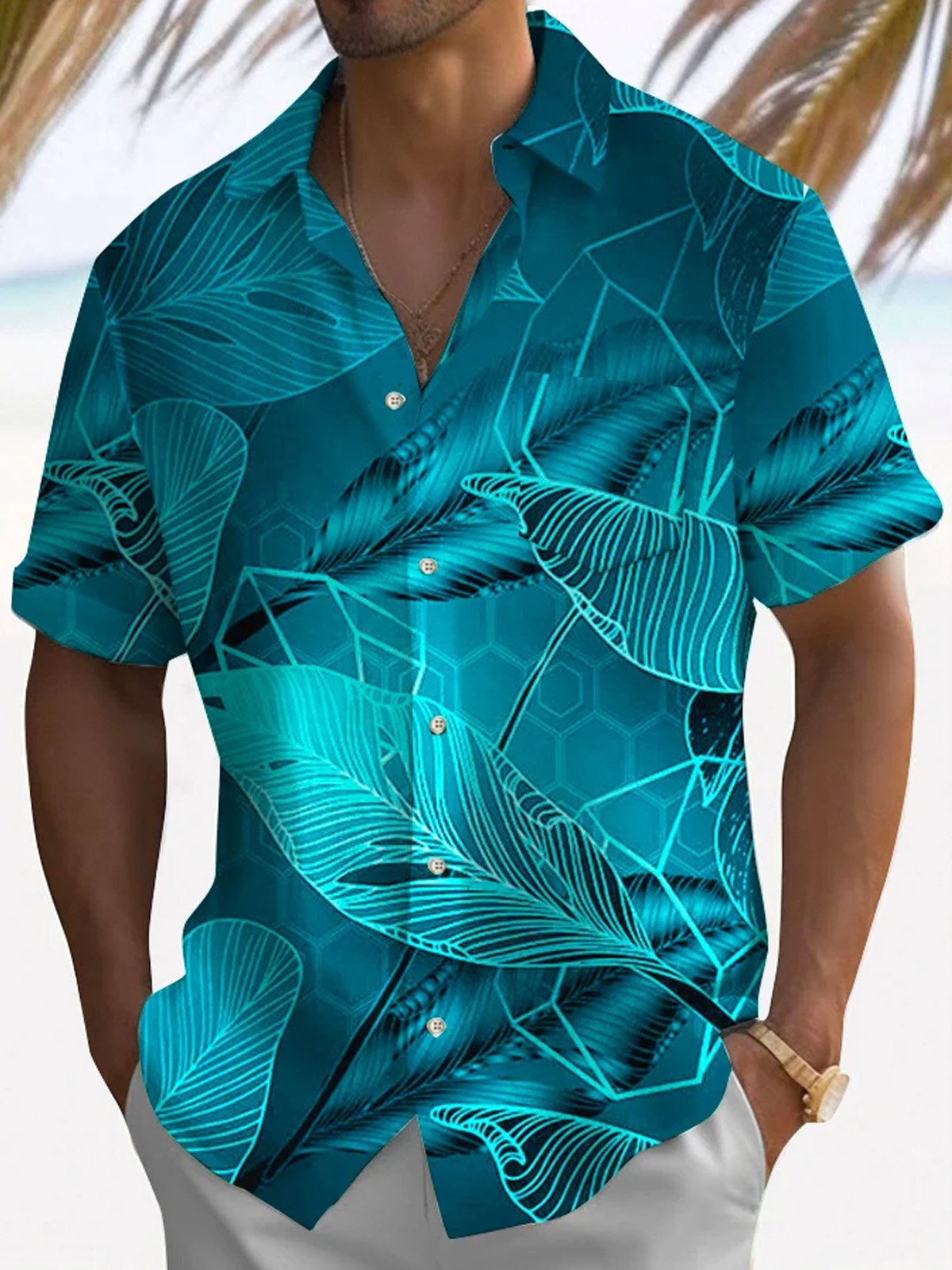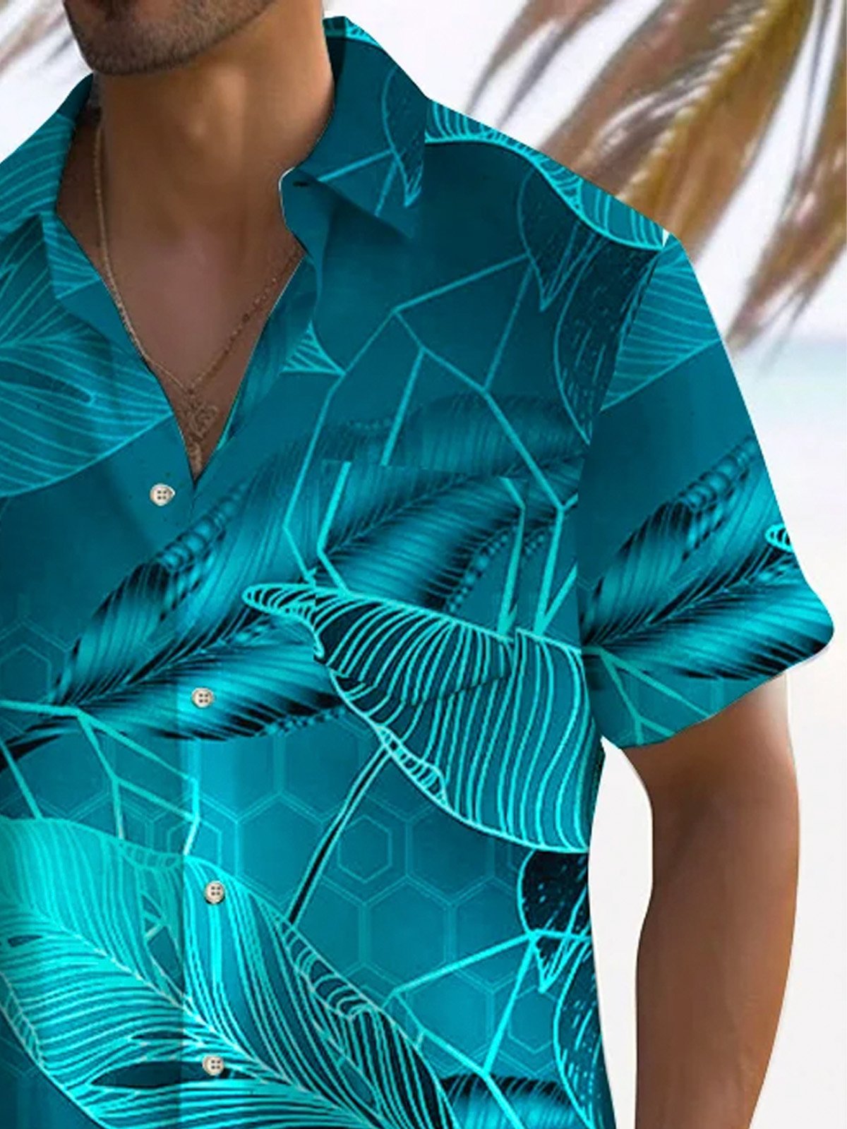 Alohadaddy Beach Vacation Tropical Leaves Men's Hawaiian Shirt Camp Pocket Shirt Big Tall