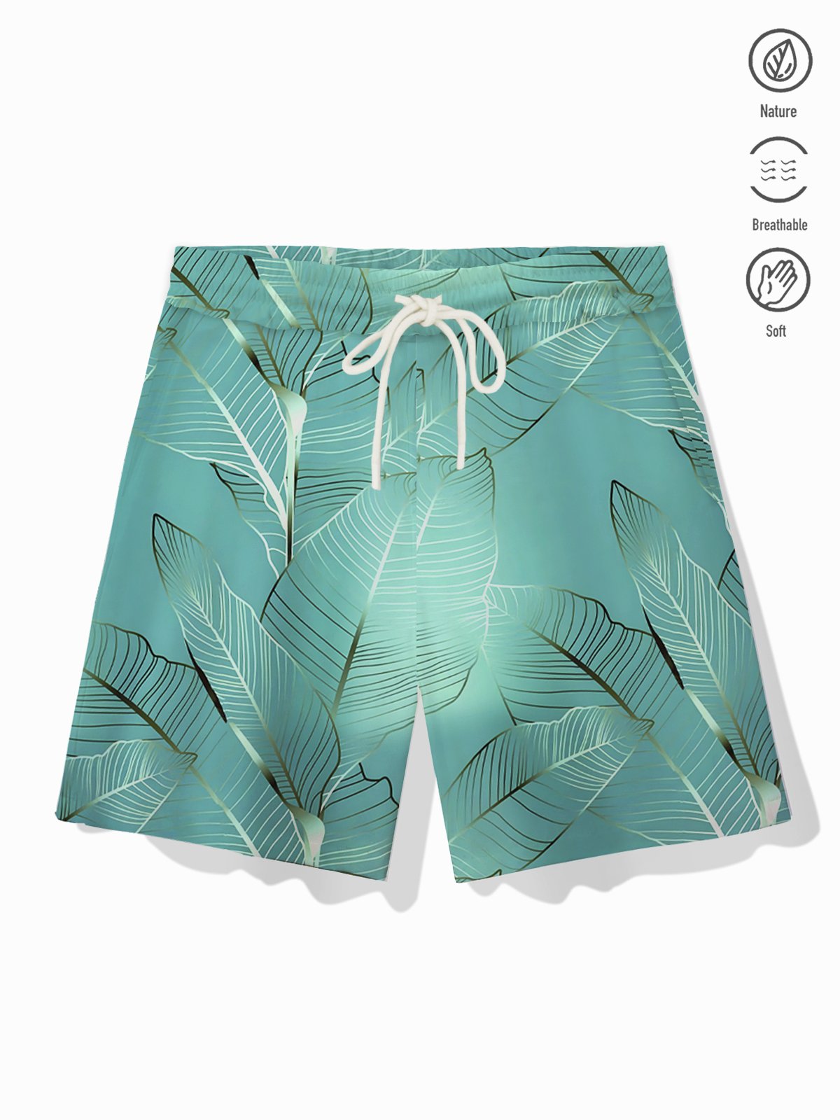 Short de bain élastique à cordon de serrage pour homme avec imprimé dégradé de feuilles et plantes hawaïennes Alohadaddy