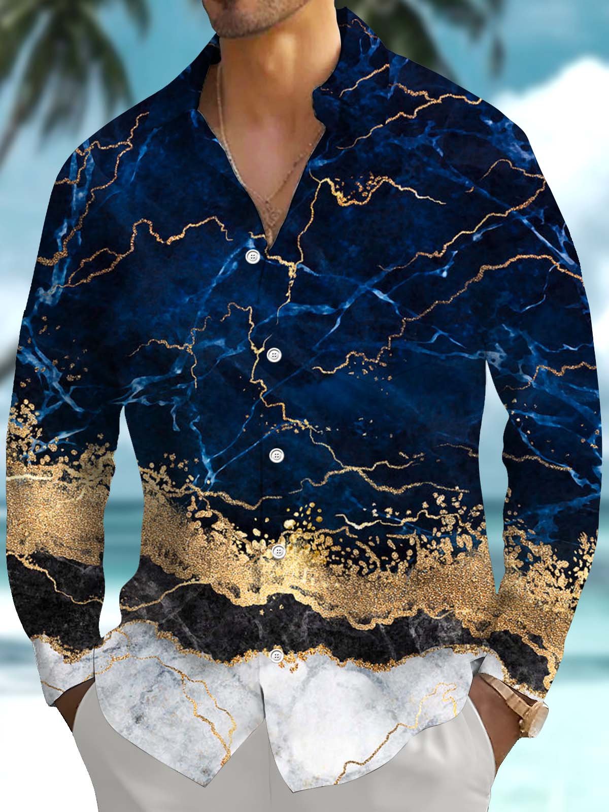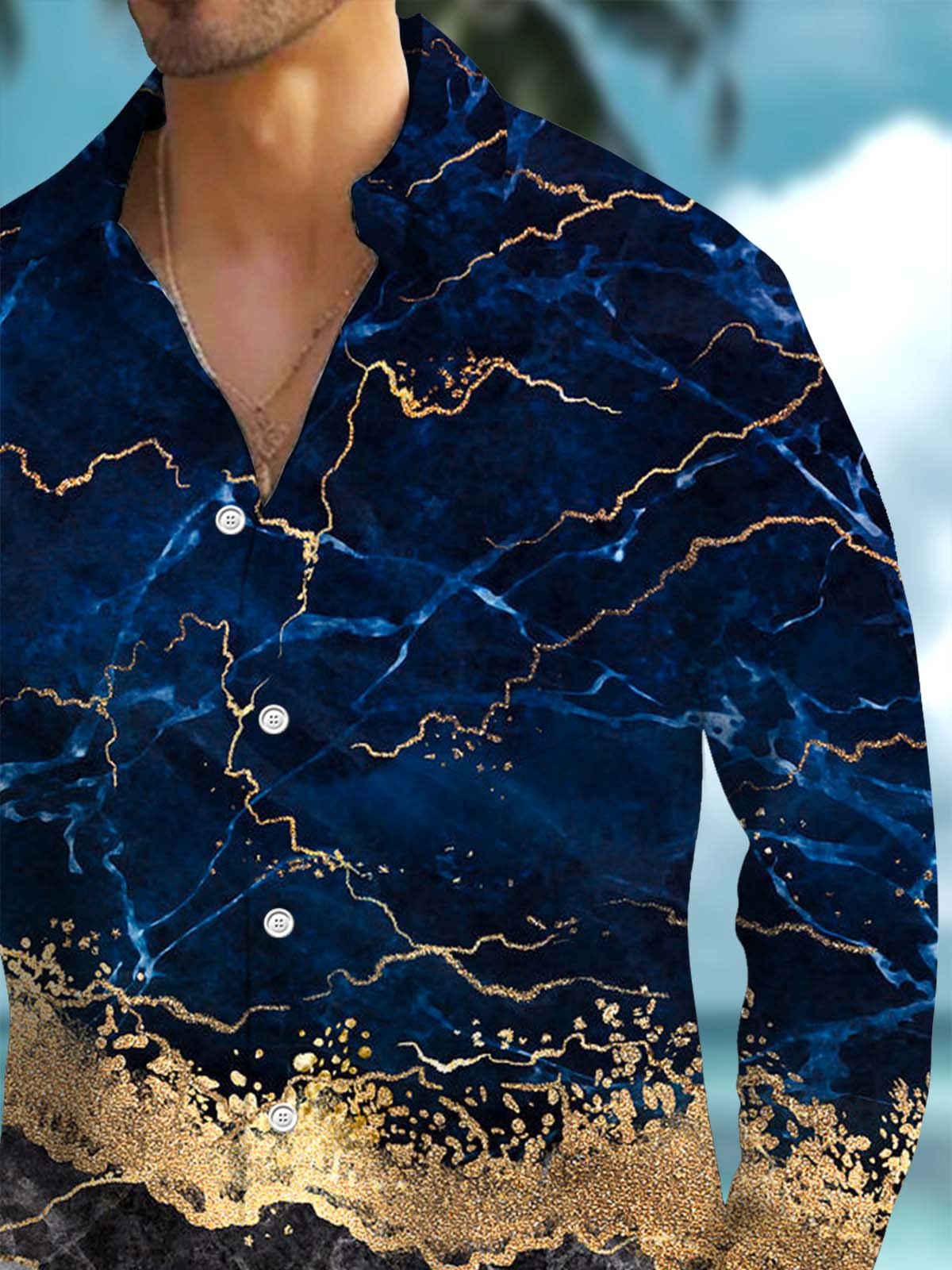 Alohadaddy® Casual Abstract Art Print Chest Pocket Stretch Men's Long Sleeve Shirt Big & Tall