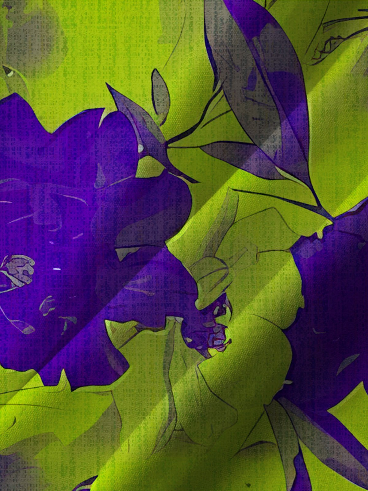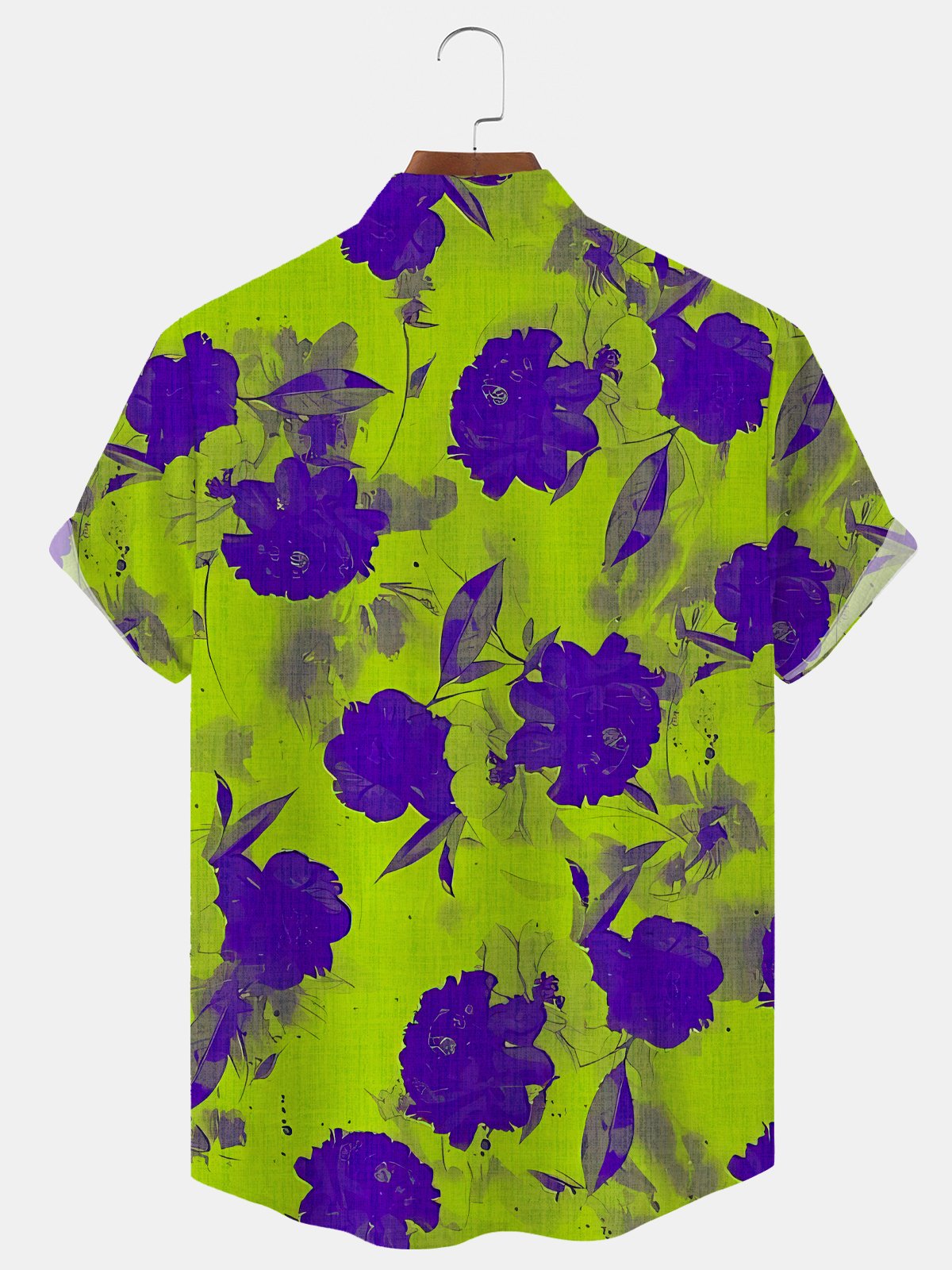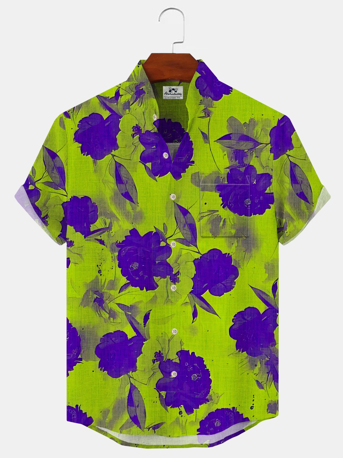 Alohadaddy Plant Flower Button Pocket Casual Short Sleeve Stand Collar Shirt