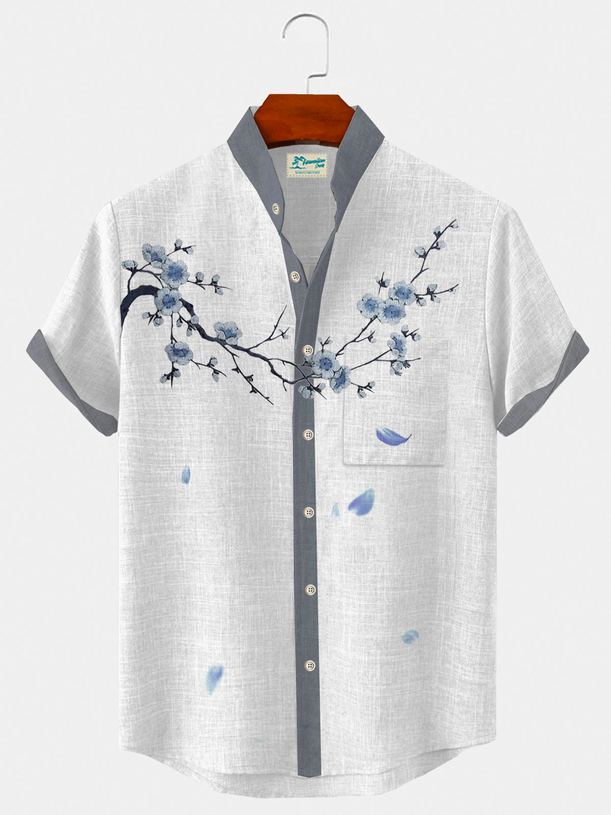 Chemise hawaïenne à col montant pour homme, grande et grande taille, à imprimé floral japonais, Alohadaddy