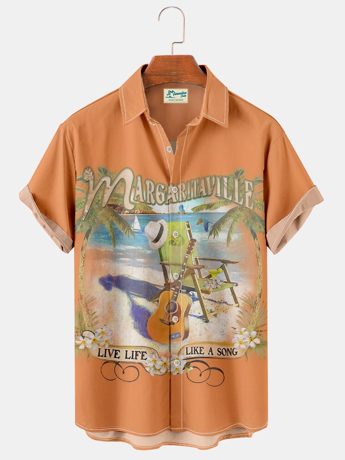 Sac de poitrine imprimé cocotier avec instrument de plage hawaïen orange Alohadaddy, chemise de vacances, grande taille
