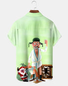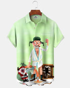 Alohadaady® Retro Christmas Movie Cartoon Print Men's Button Pocket Short Sleeve Shirt Big & Tall