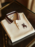 Alohadaddy® Business Casual Equestrian Logo Print Glossy Elastic Button Men's Long Sleeve Polo Shirt Big & Tall