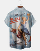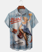 Alohadaddy® Casual Beer Print Art Button Cardigan Pocket Men's Short Sleeve Shirt Big & Tall