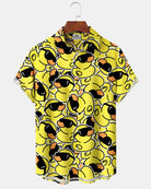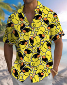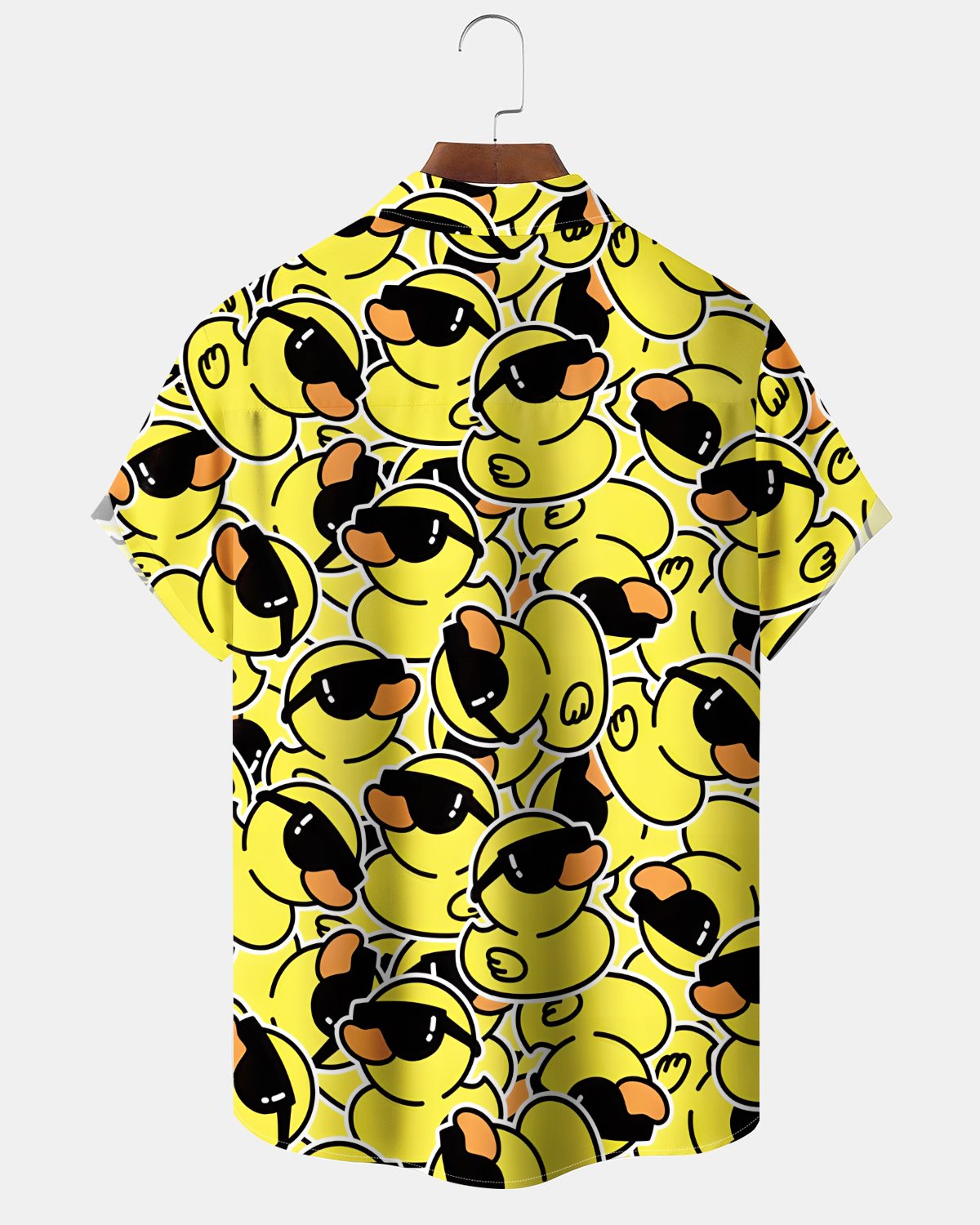Alohadaddy® Casual Duck Print Art Button Pocket Cardigan Men's Short Sleeve Shirt