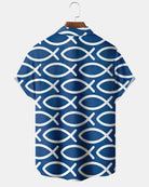 Alohadaddy® Casual Geometric Fish Print Art Stretch Button Pocket Men's Short Sleeve Shirt Big & Tall