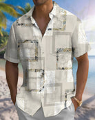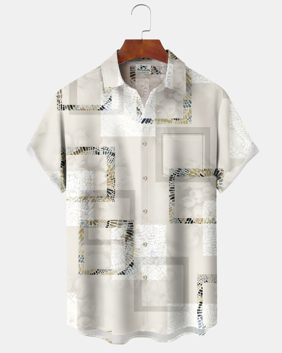 Alohadaddy® Casual Geometric Print Art Pocket Button Cardigan Men's Short Sleeve Shirt Big & Tall
