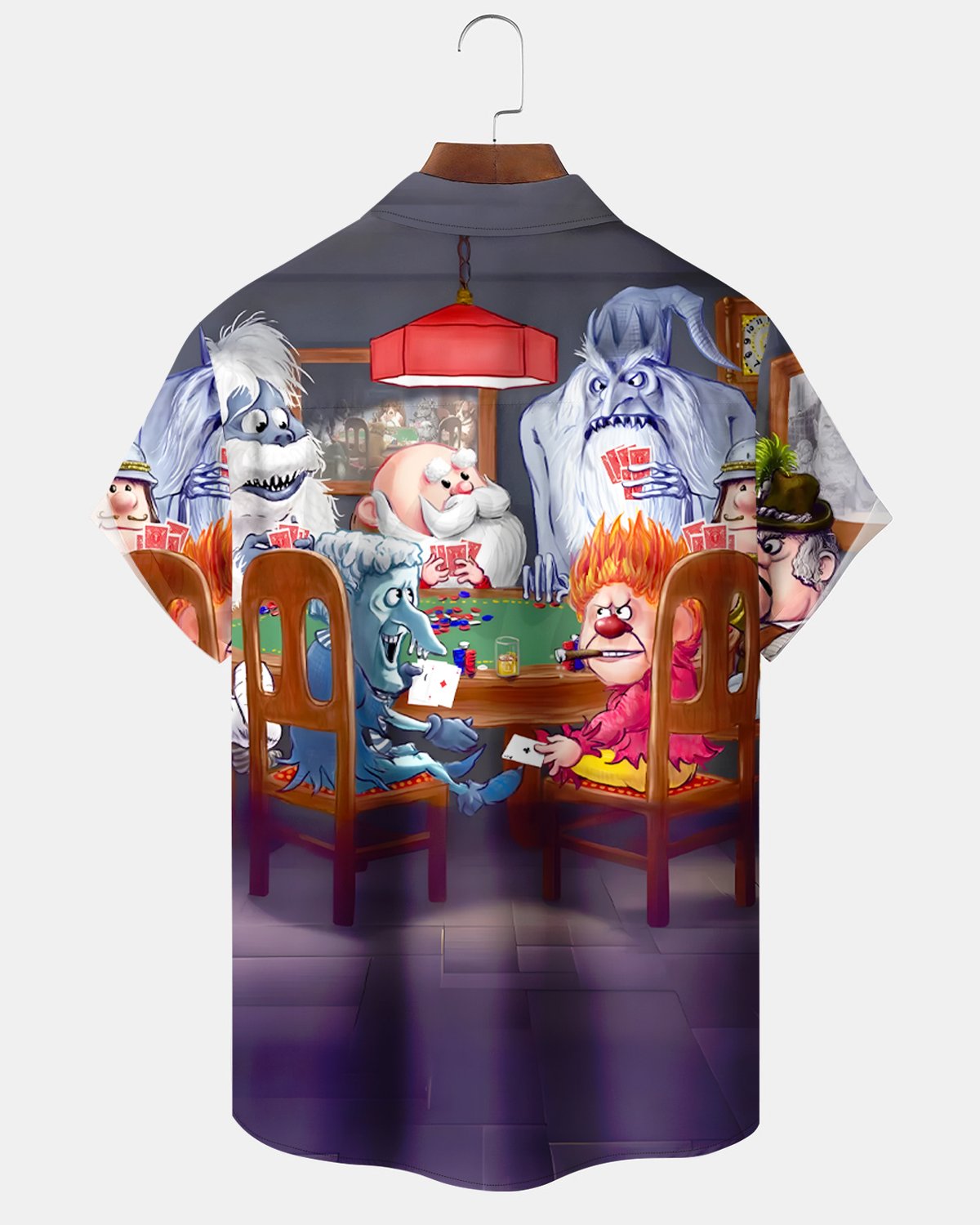Alohadaddy® Christmas Cartoon Print Men's Button-Down Lapel Pocket Short Sleeve Shirt Big & Tall