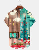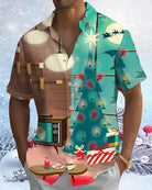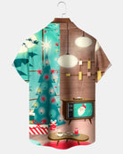 Alohadaddy® Christmas Retro Mid-Century Geometric Print Pocket Elastic Button Men's Short Sleeve Shirt Big & Tall