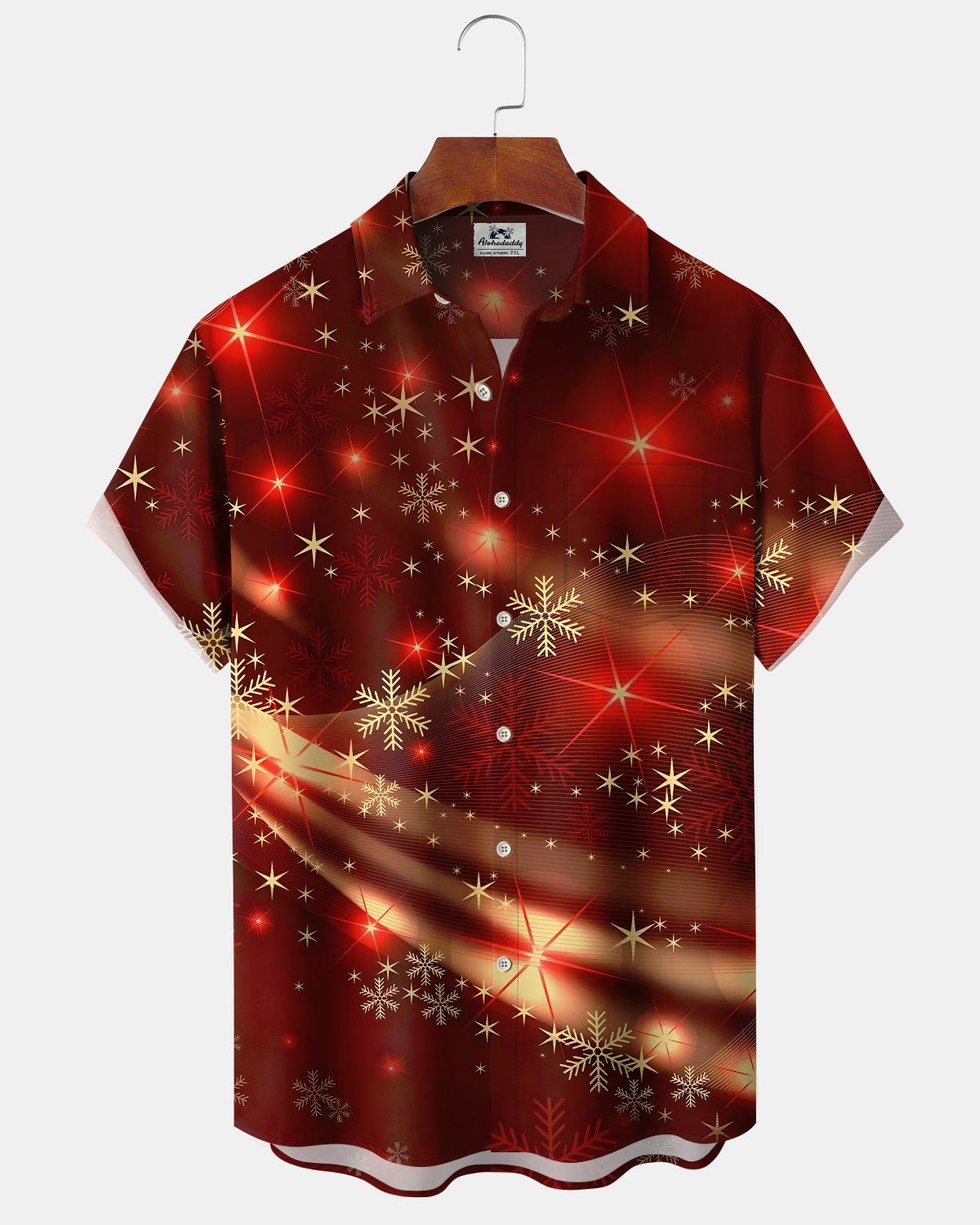 Alohadaddy® Christmas Snowflake Print Casual Stylish Hawaiian Shirt Summer Shirts Pocket Short Sleeve Shirt Big Tall