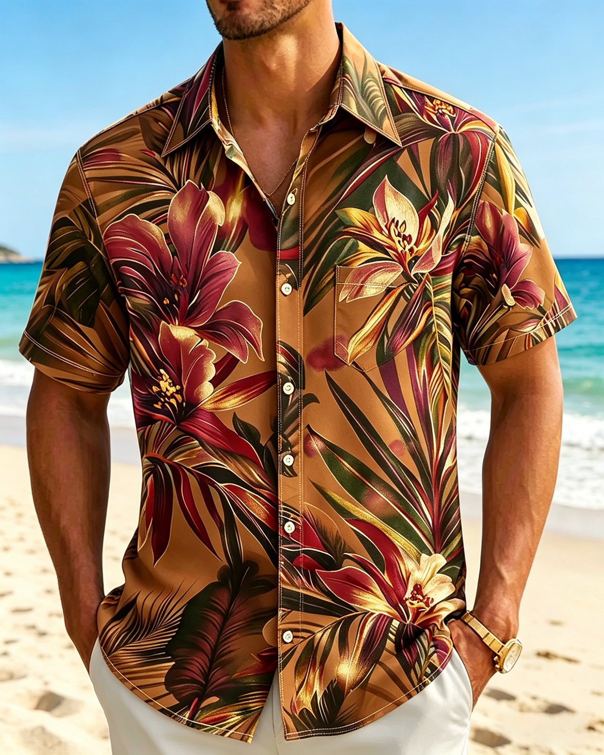 Alohadaddy® Hawaiian Classic Floral Tropical Plant Short-Sleeve Shirt