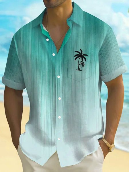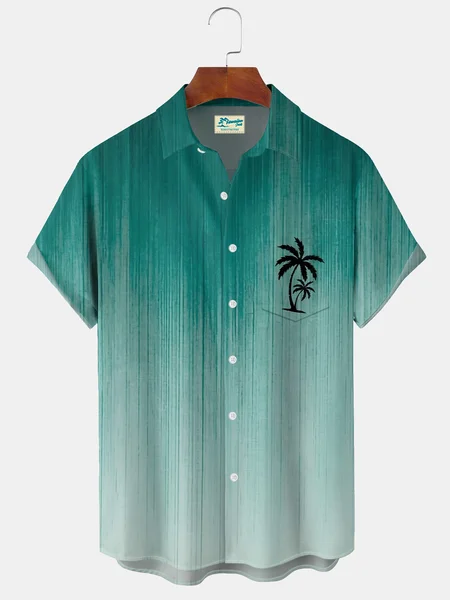 Alohadaddy® Hawaiian Gradient Palm Tree Print Art Buttons Pockets Cardigan Men's Short-Sleeve Shirt Big & Tall