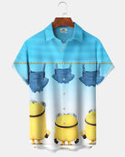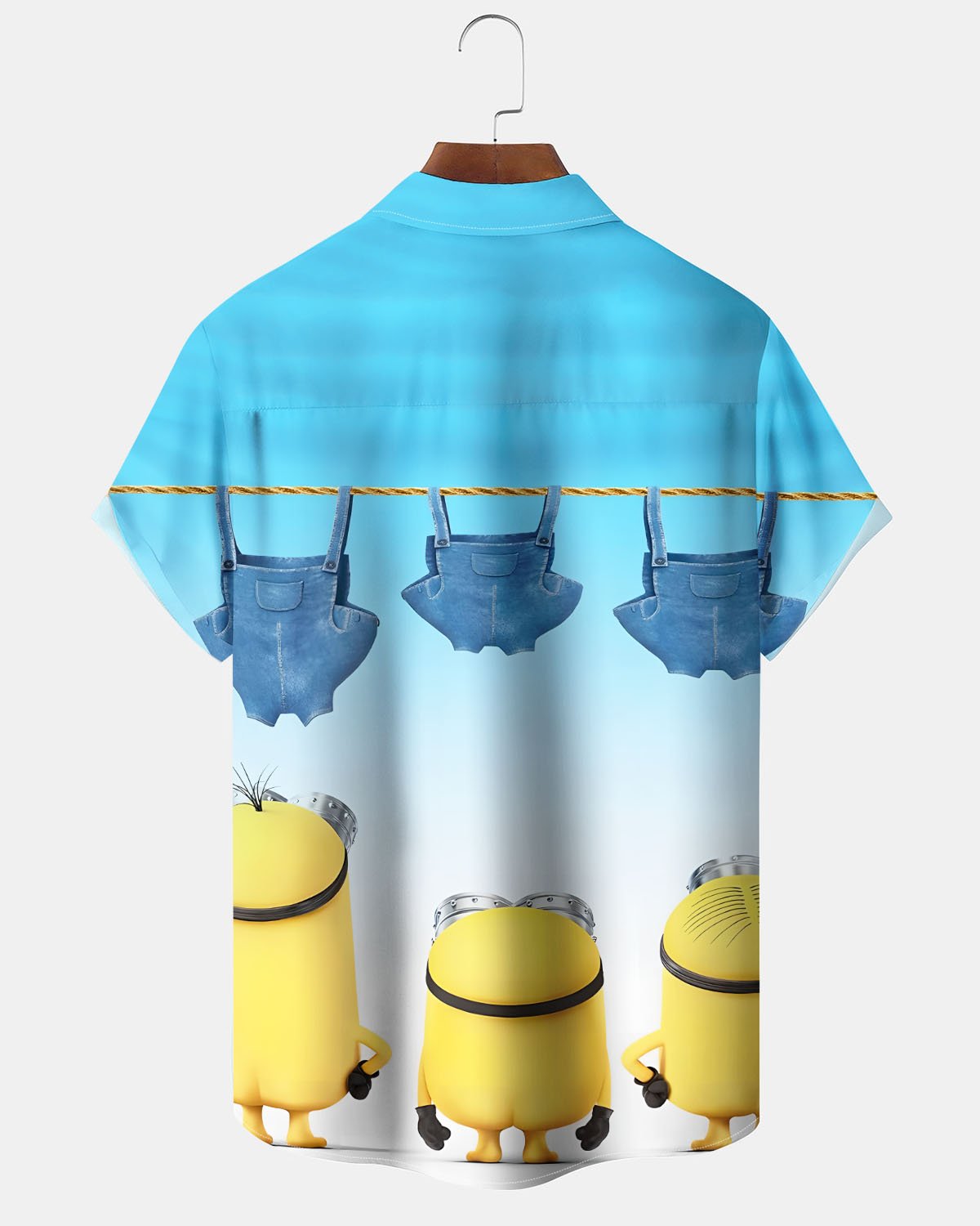 Alohadaddy® Hawaiian Minions Cartoon Print Art Pocket Button-Up Men's Short-Sleeve Shirt Big & Tall