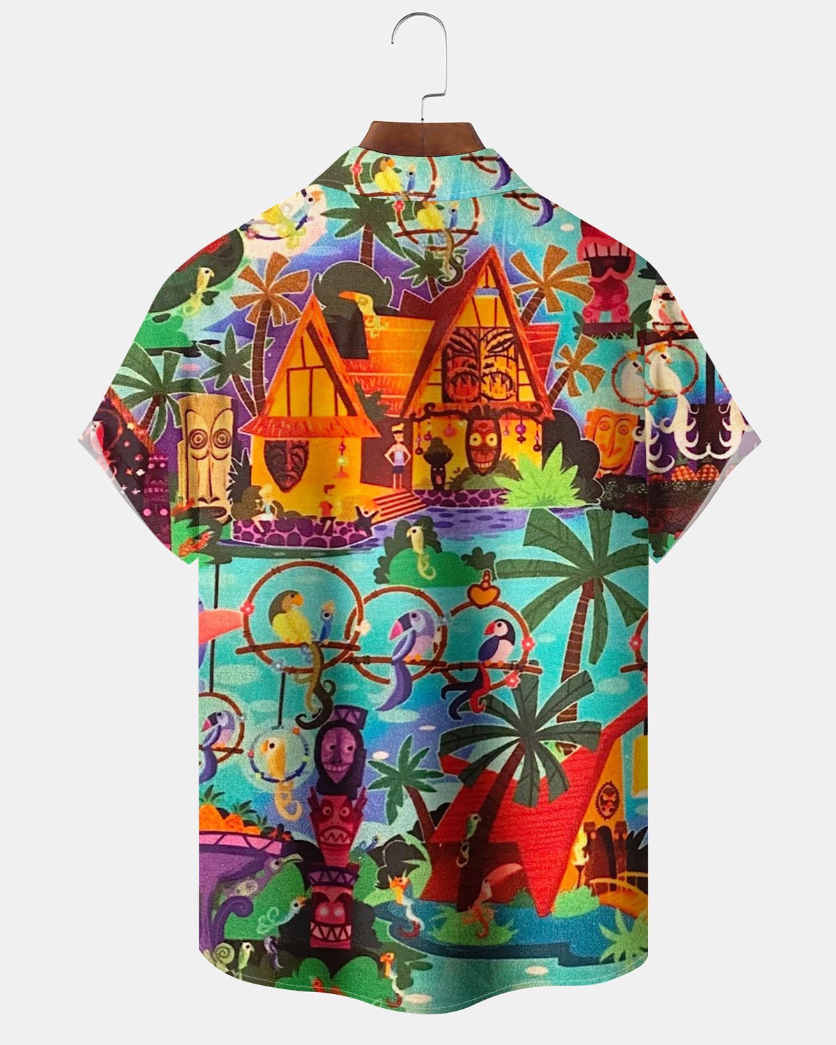 Alohadaddy® Hawaiian Tiki Guitar Print Art Pocket Button-Down Short-Sleeve Shirt for Men Big & Tall