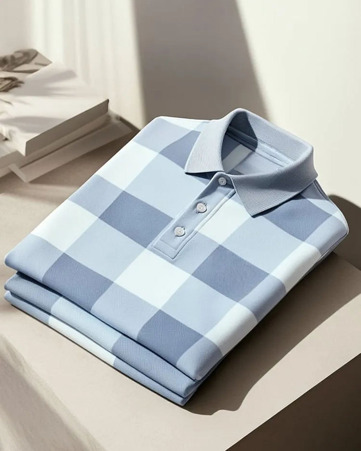 Alohadaddy® Men's Basic Casual Check Geometric Short-Sleeve Polo Shirt