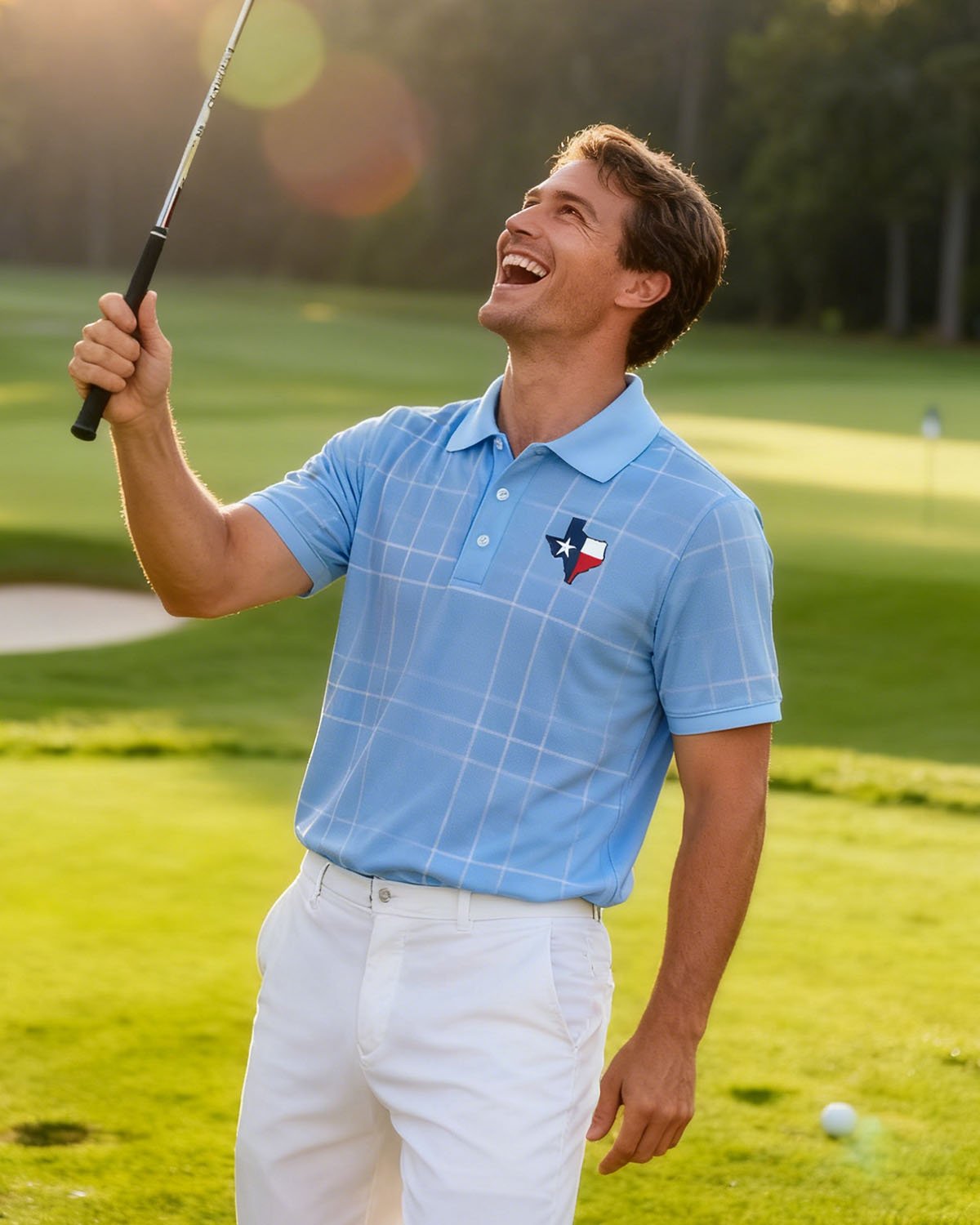 Alohadaddy® Men's Basic Geometric Line Short-Sleeve Polo Shirt
