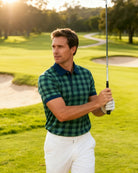Alohadaddy® Men's Basic Plaid Geometric Casual Short-Sleeve Polo Shirt