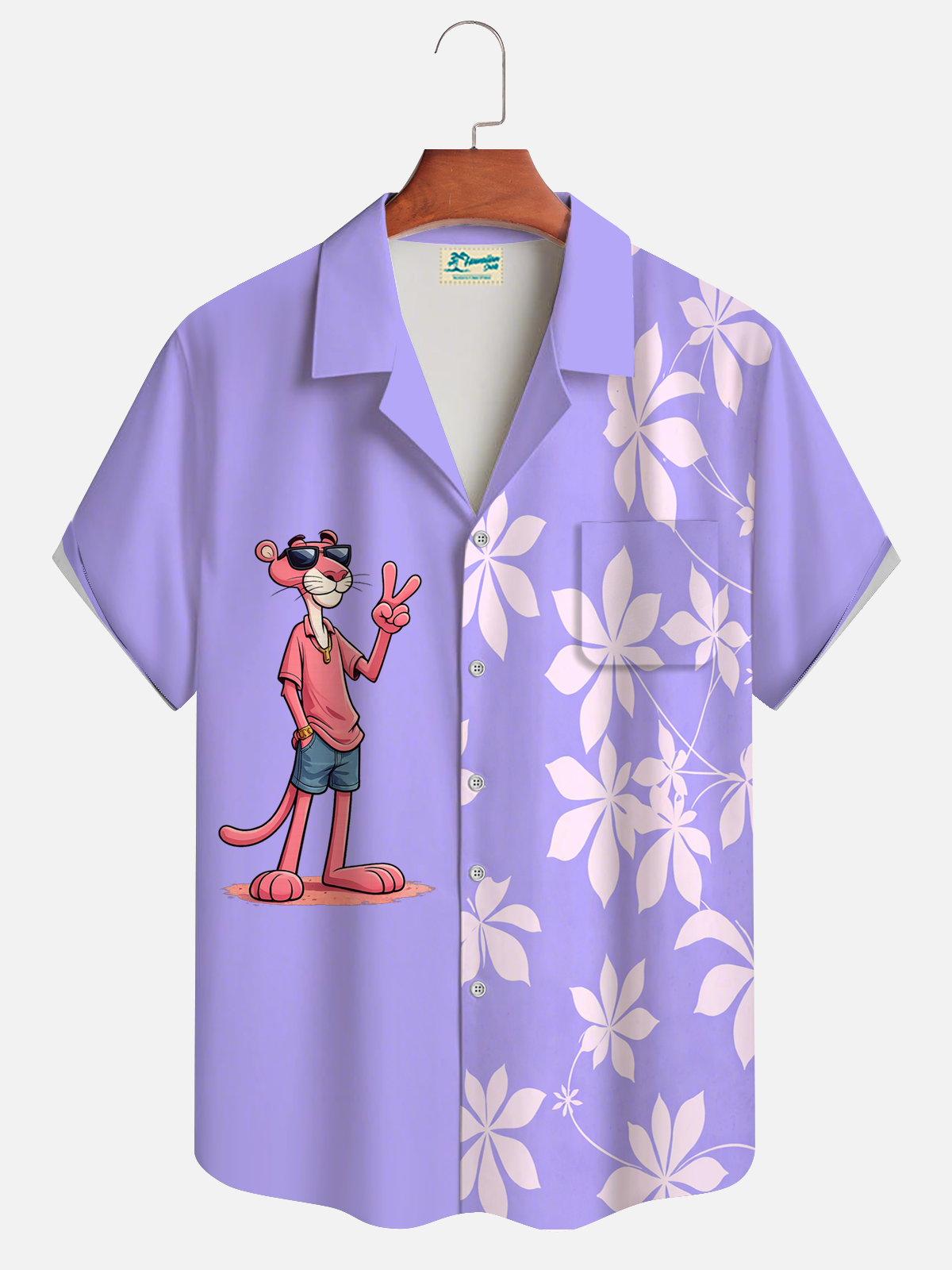 Alohadaddy® Men's Tropic Leopard Coconut Tree Bowling Forgiving Fit Camp Collar Print Retro Short Sleeve Shirt Big & Tall