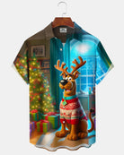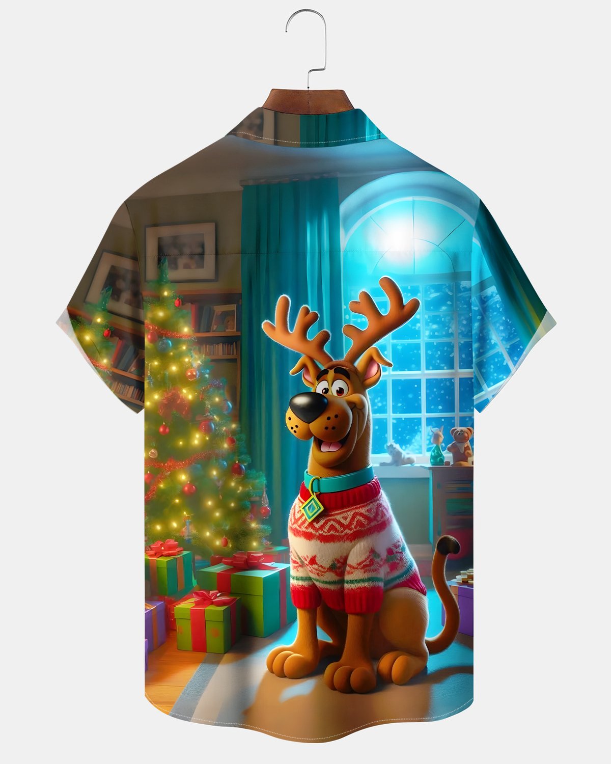 Alohadaddy® Retro Cartoon Christmas Movie Dog Christmas Tree Short-Sleeve Men's Shirt