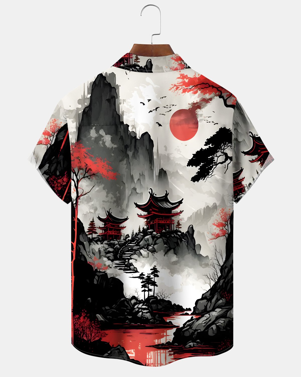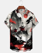 Alohadaddy® Retro Ink Painting Tie-Dye Landscape Ukiyo-e Hawaiian Shirt