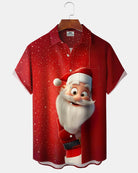 Alohadaddy® Santa Claus Fun Print Men's Button Pocket Short-Sleeve Shirt Big & Tall