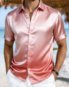 Alohadaddy® Satin Silk Gradient Color Basic Breathable Button-Down Shirt