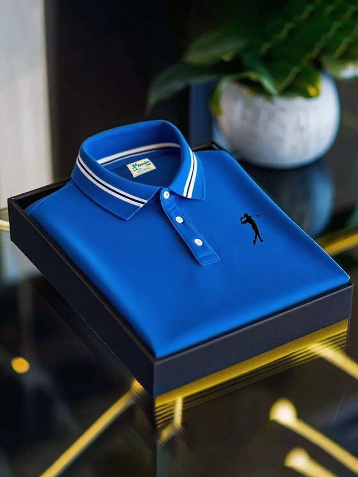 Alohadaddy® Men's Business Solid Golf Logo Lapel Button-Down Short Sleeve Polo Shirt Big & Tall