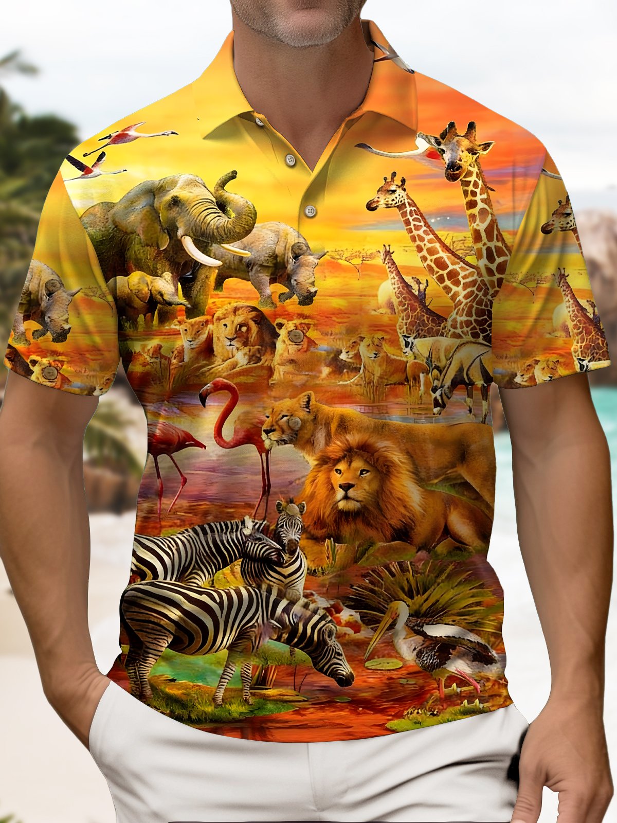 Alohadaddy® Retro Animal Lion Elephant Zebra Short-Sleeve Polo Shirt
