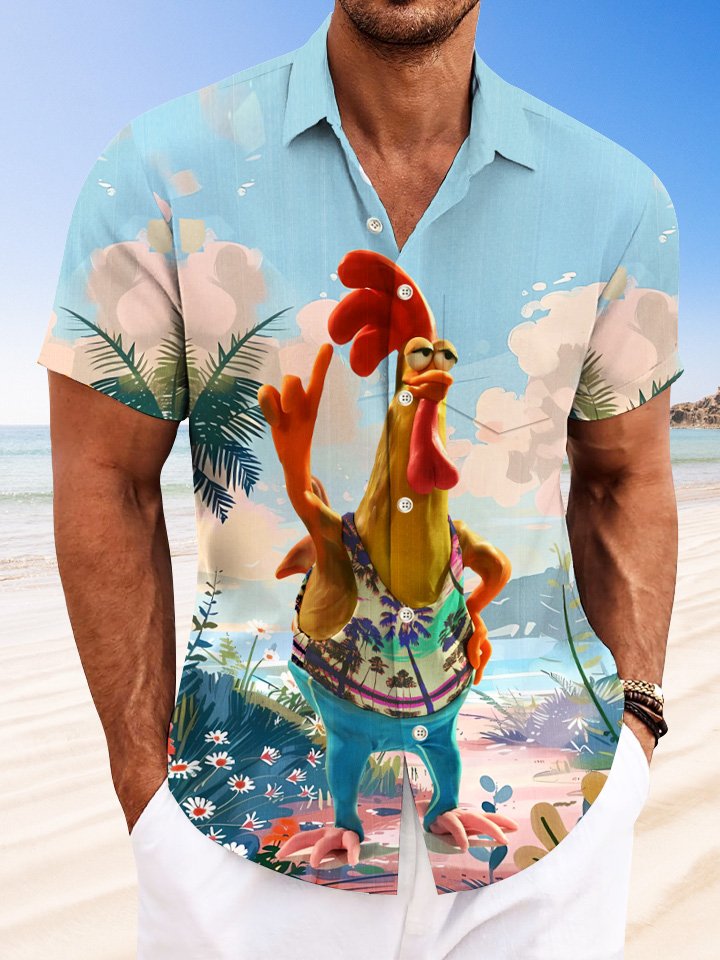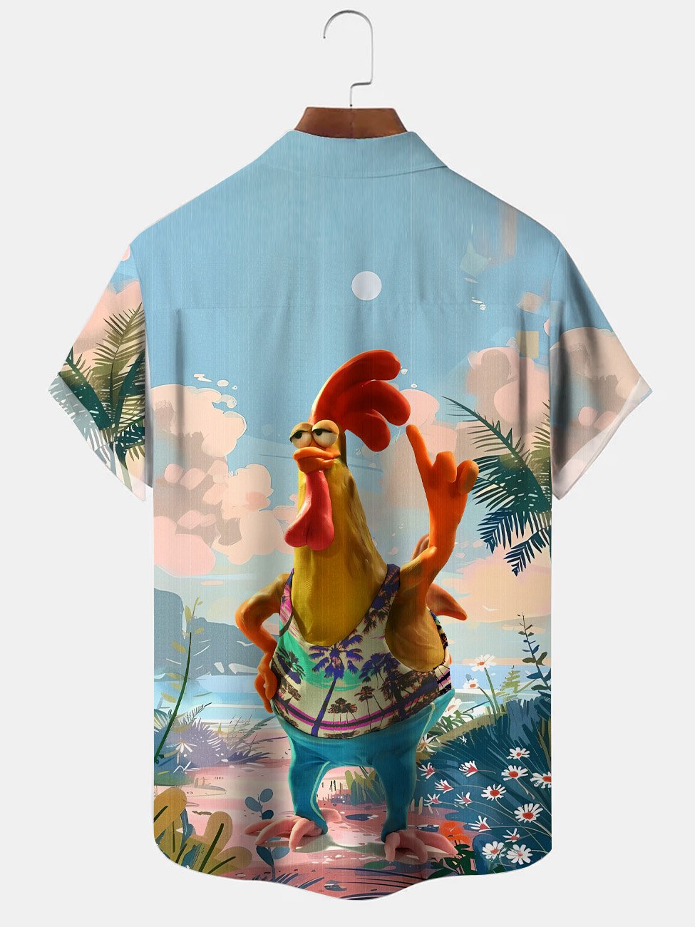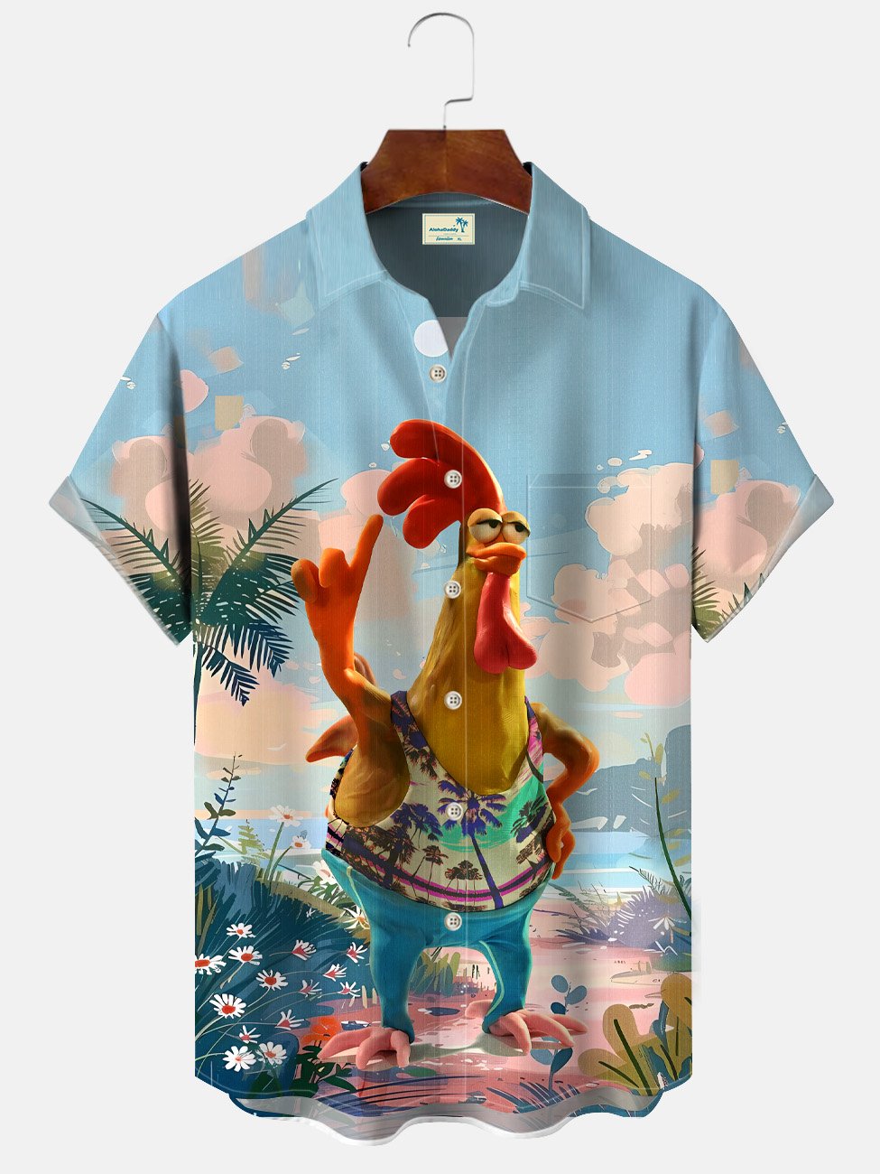 Chemise à manches courtes décontractée avec poche à bouton pour homme et femme, motif coq et animaux amusants, pour les vacances, plage, Alohadaddy