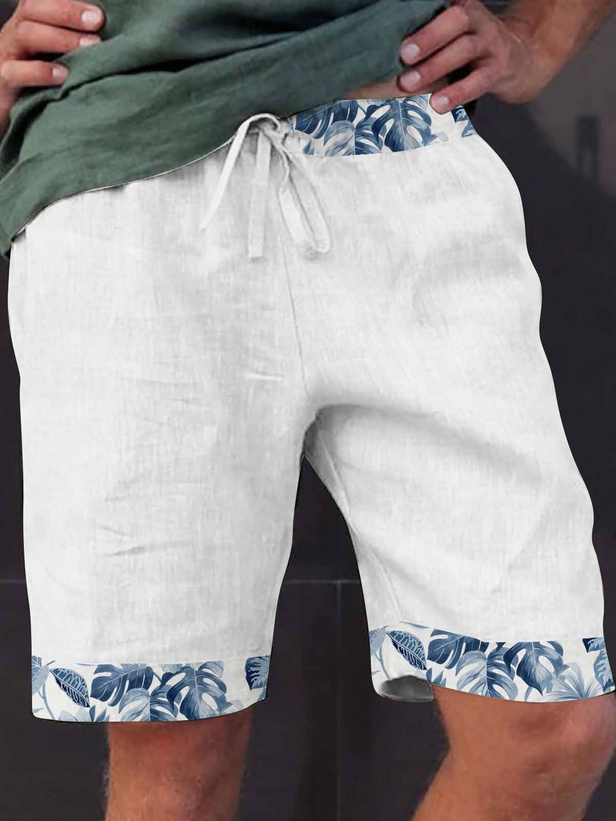 Short de plage en coton et lin pour homme avec motif de plantes tropicales hawaïennes Alohadaddy Short évacuant l'humidité