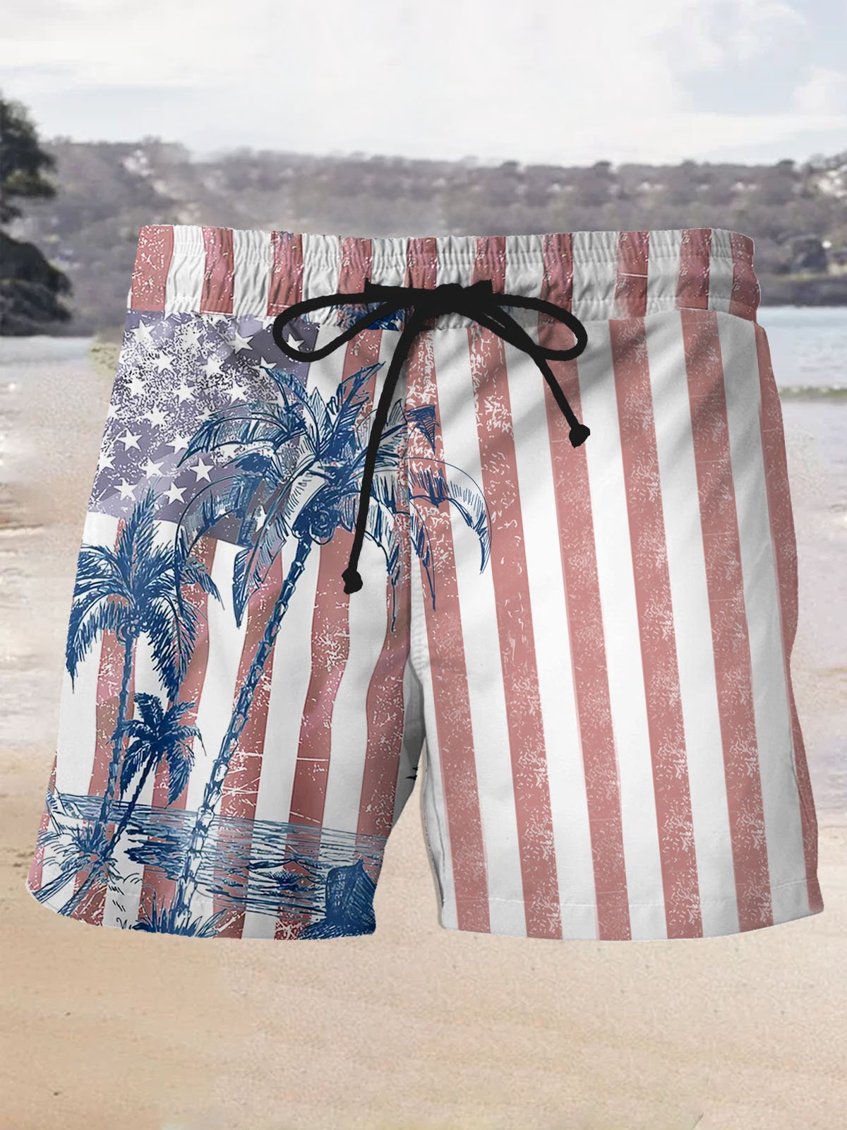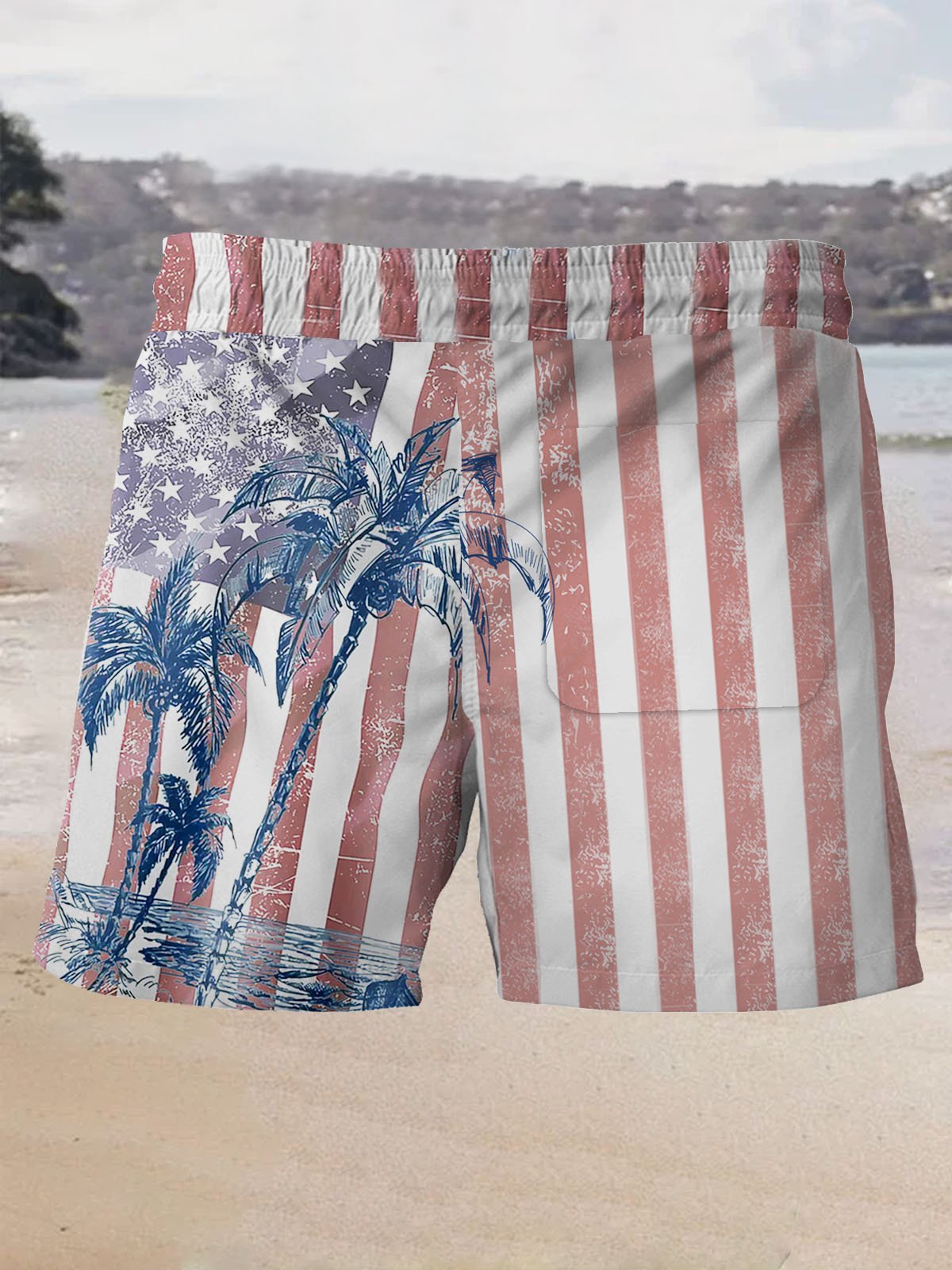 Alohadaddy Hawaiian Coconut Tree Flag Print Men's Beach Shorts Swim Trunks
