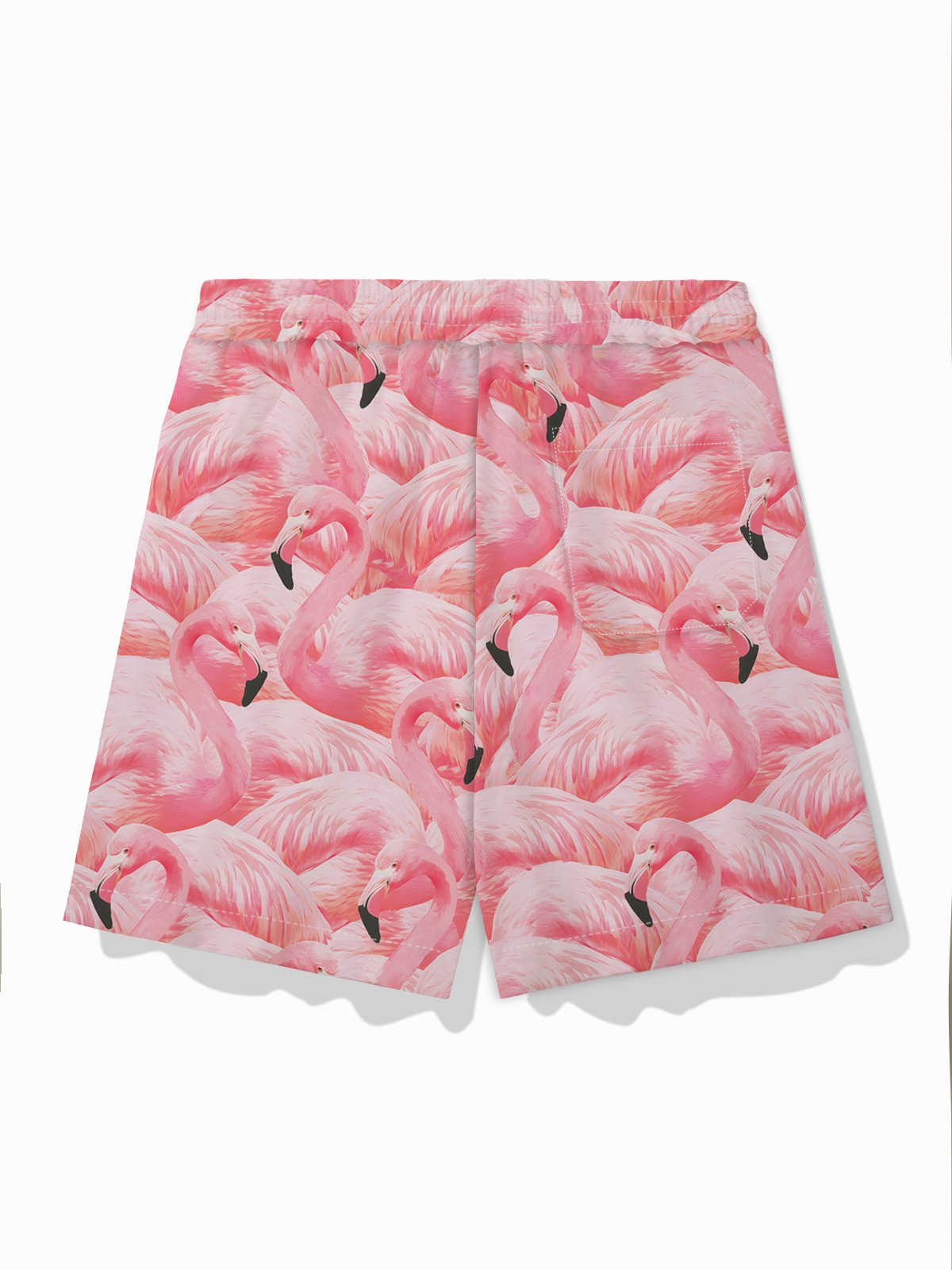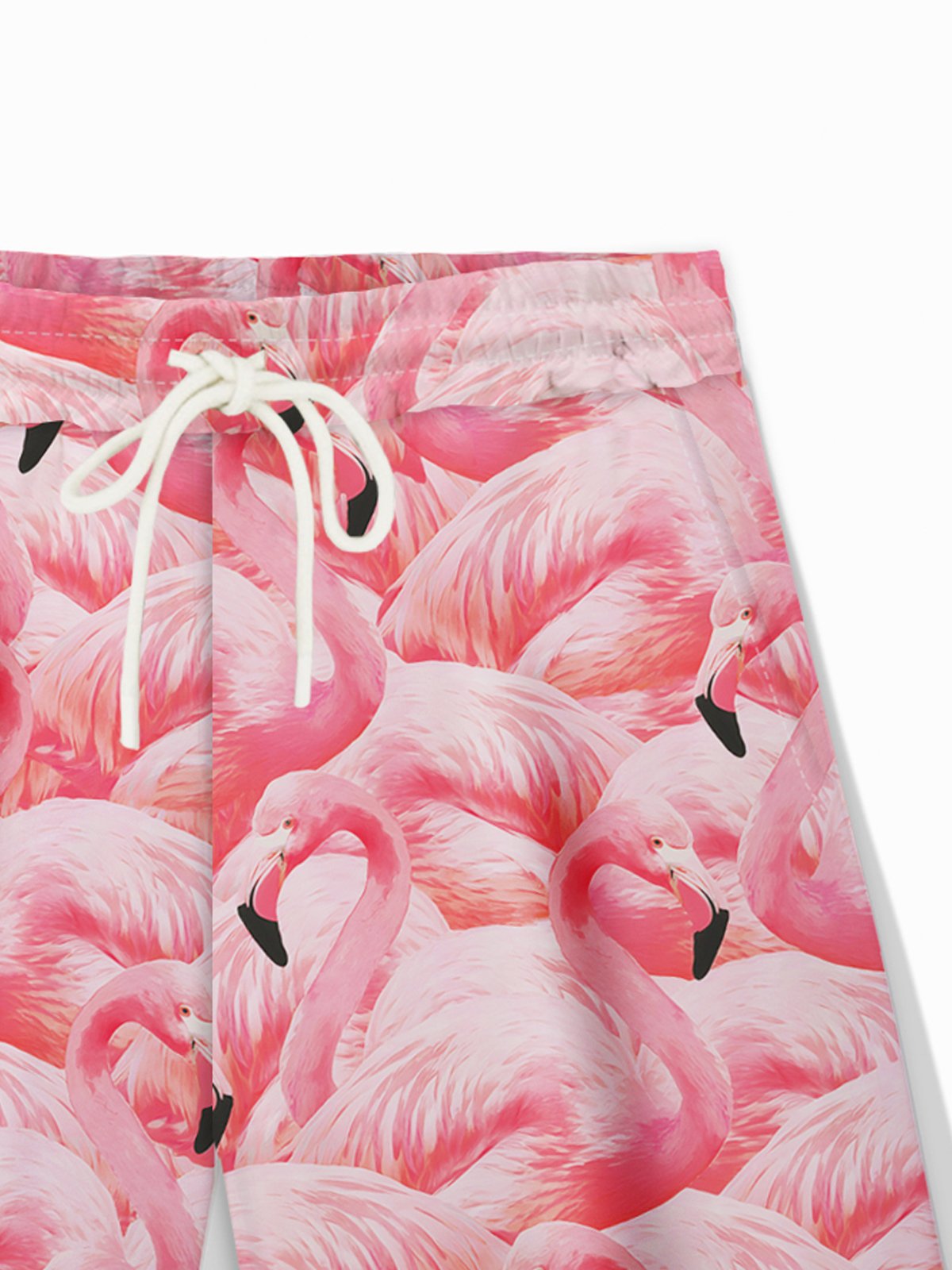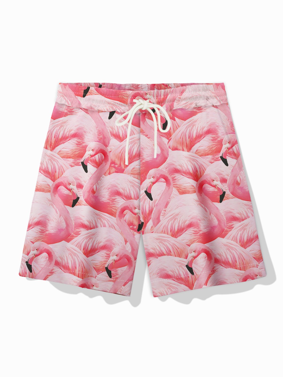 Alohadaddy Hawaiian Flamingo Print Men's Drawstring Shorts Board Shorts