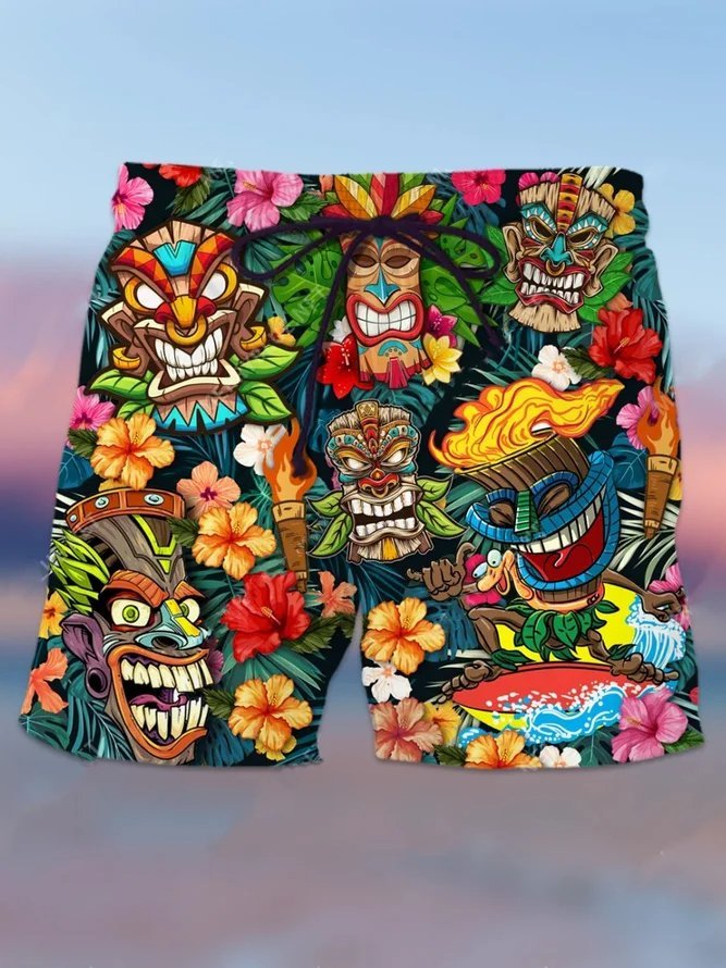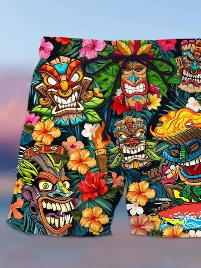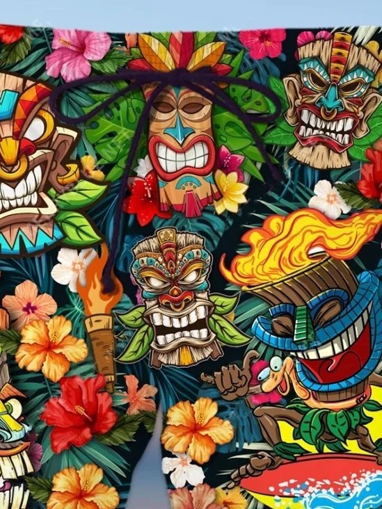Pantalon de plage hawaïen pour homme, grande taille, séchage rapide, sans plis, culture Totem Tiki
