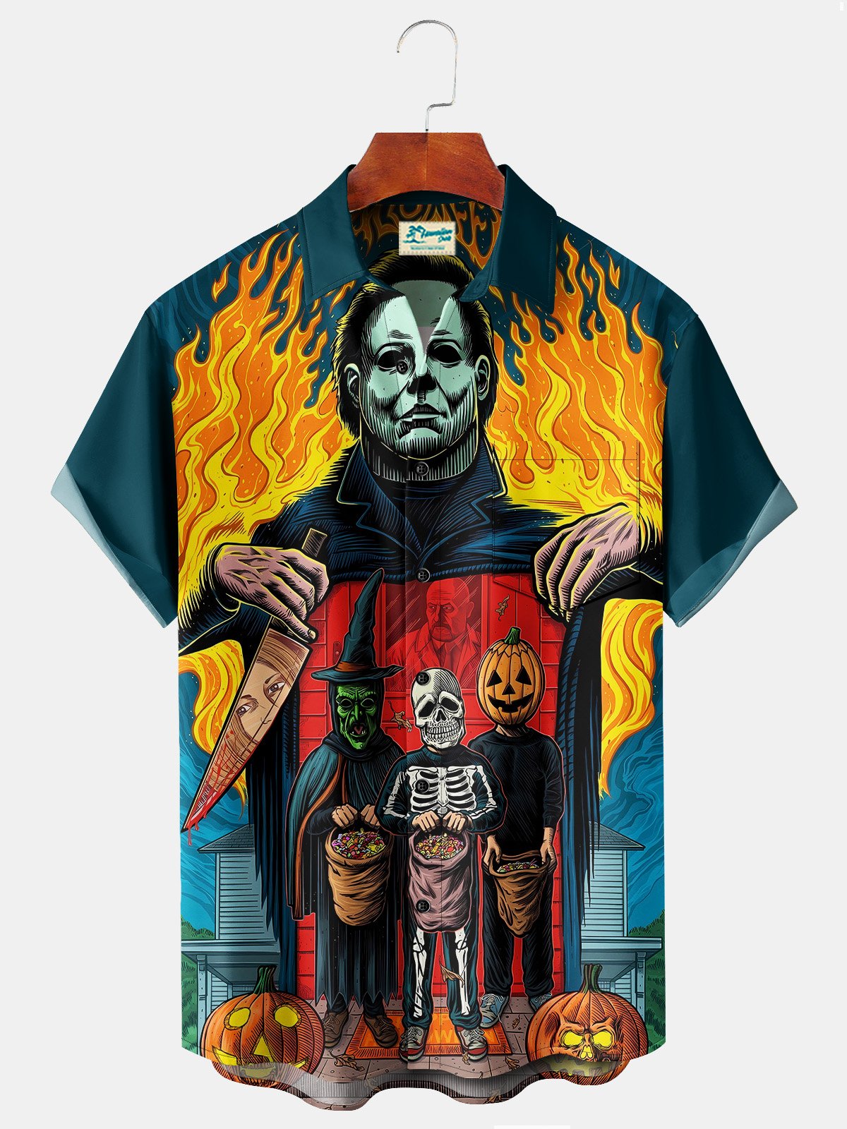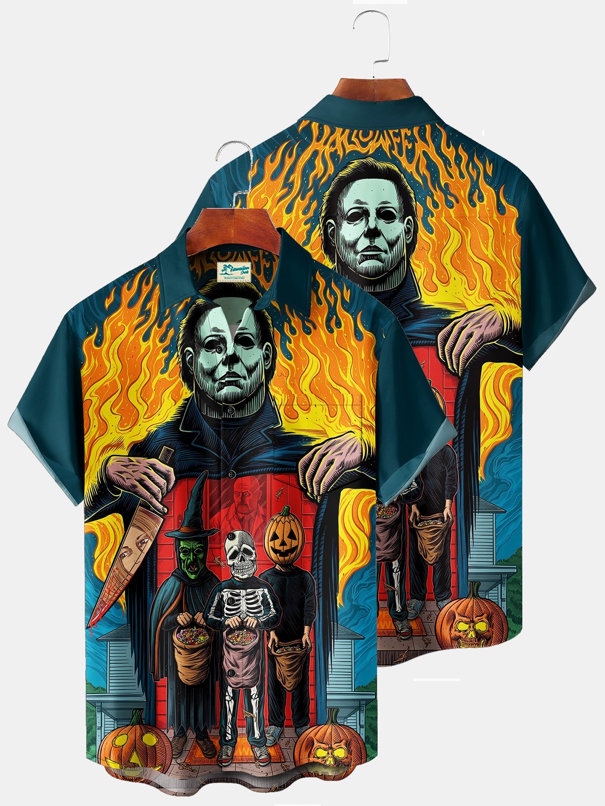 Chemises hawaïennes décontractées pour hommes d'Alohadaddy pour Halloween, motif dessin animé, sorcière, citrouille, crâne, extensible, grande taille, chemises Aloha