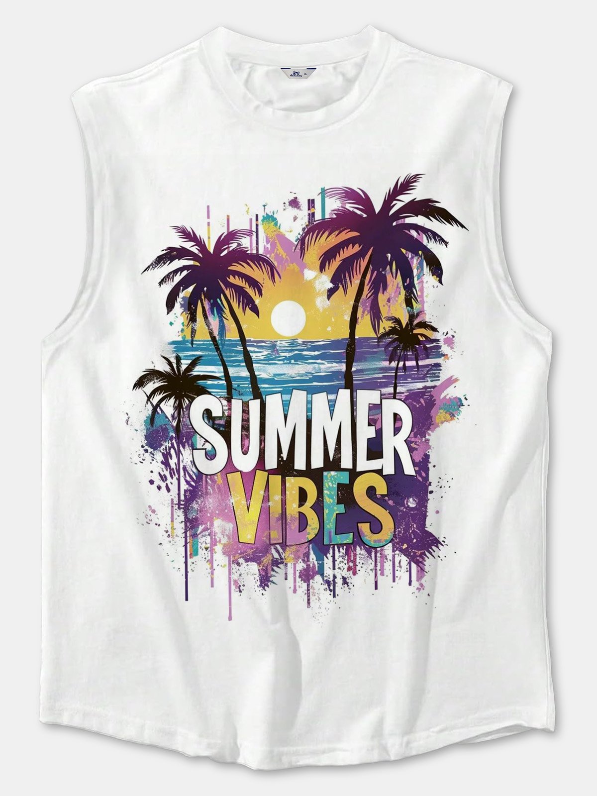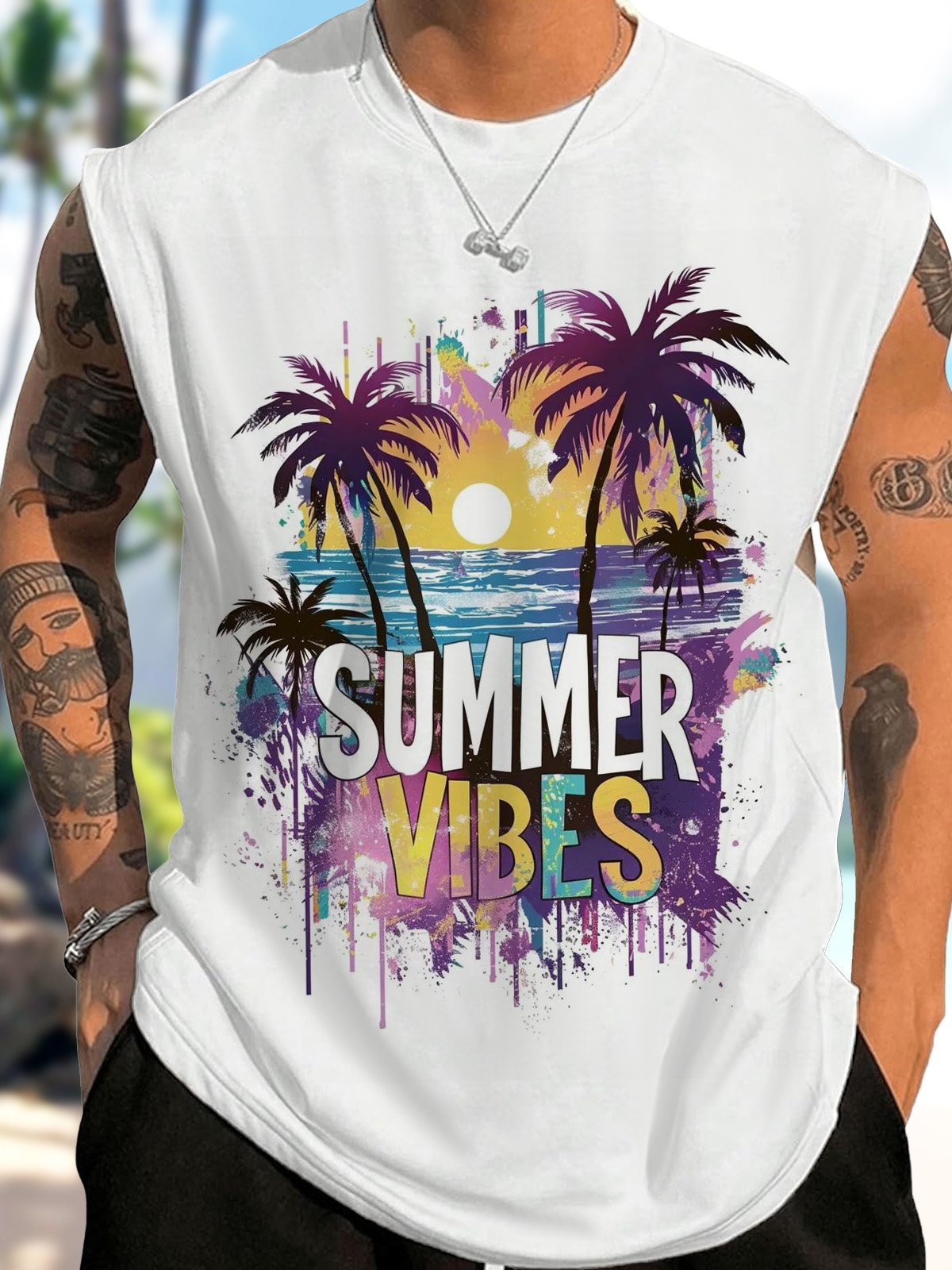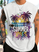 Alohadaddy® Hawaii Palm Tree Lettering Print Art Moisture Wicking Large Size Stretch Tank Top