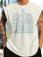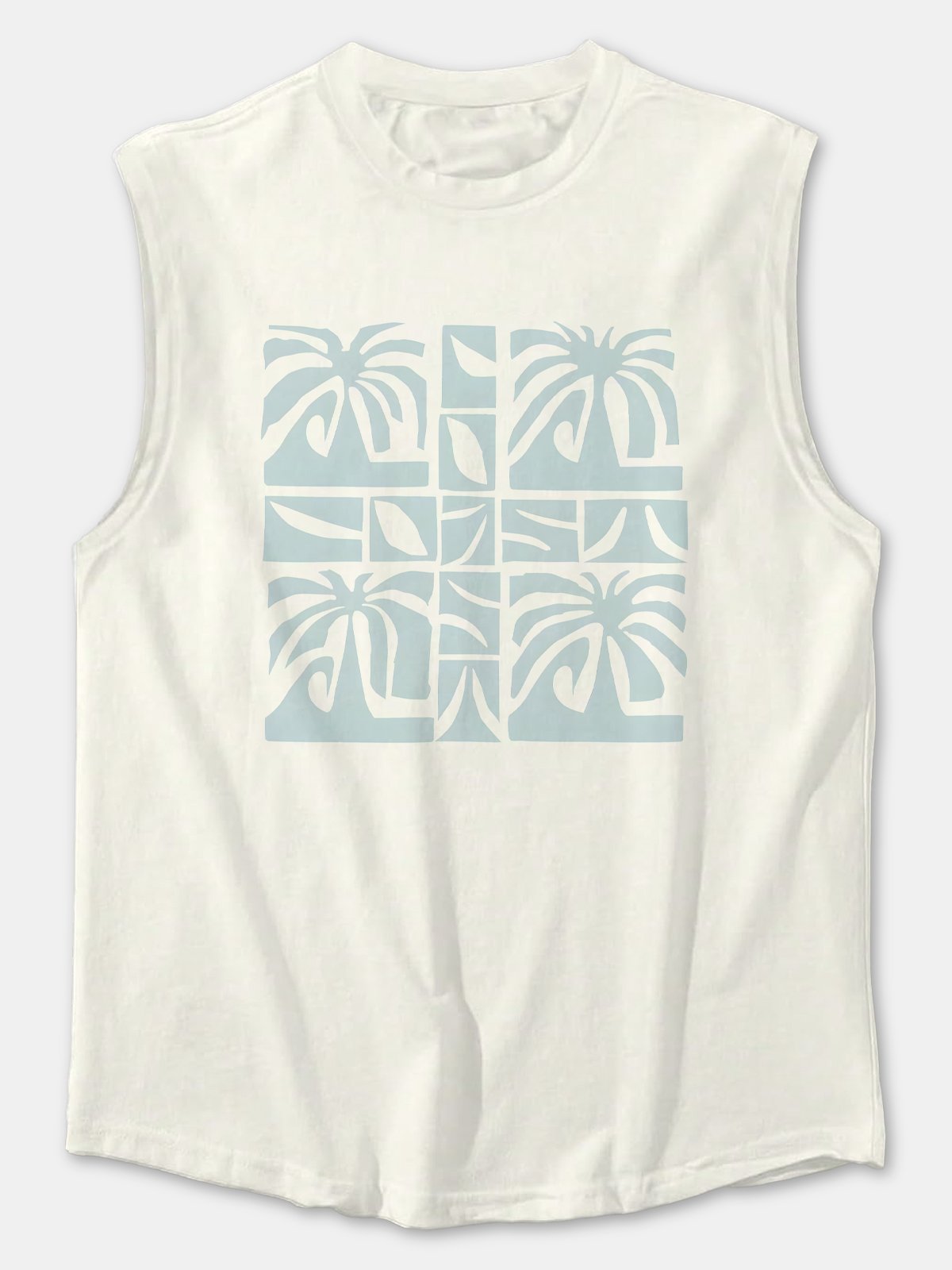 Alohadaddy Coconut Tree Round Neck Vacation Casual Sleeveless Tank Top