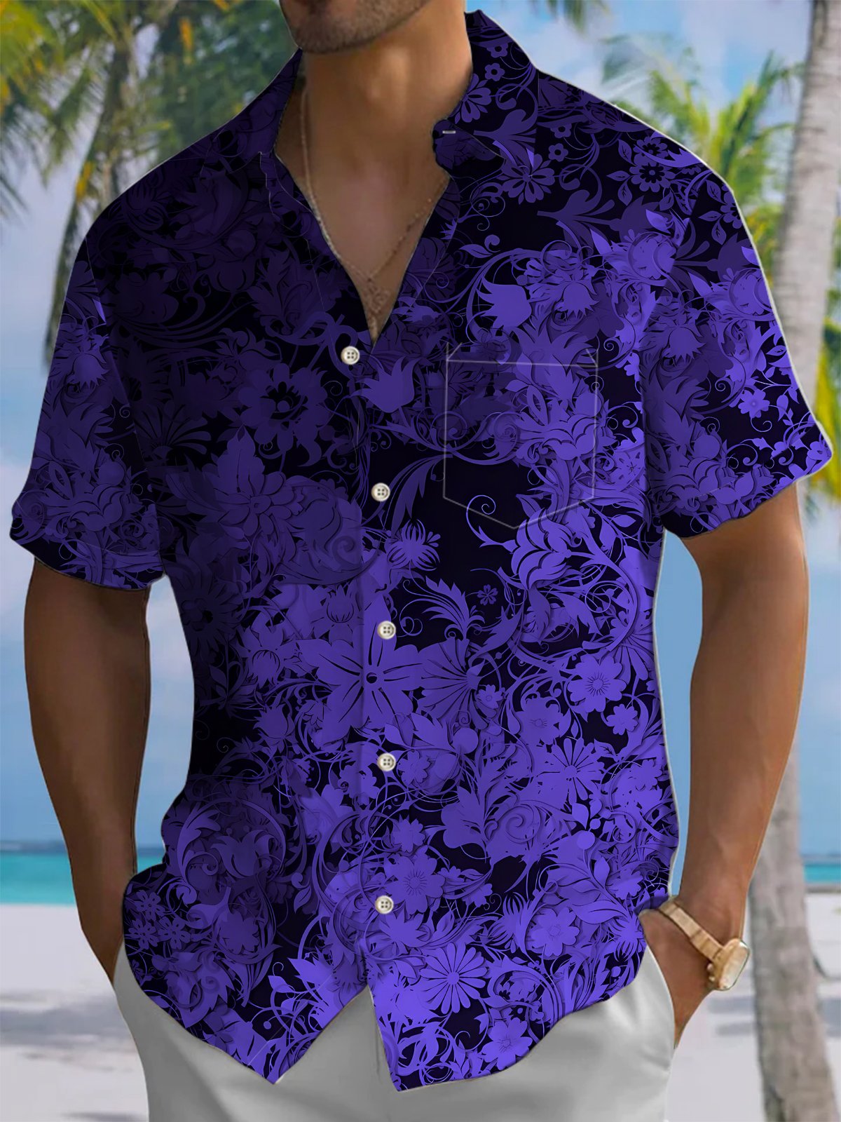 Alohadaddy® Casual Floral Art Print Moisture Wicking Men's Short Sleeve Shirt Big & Tall