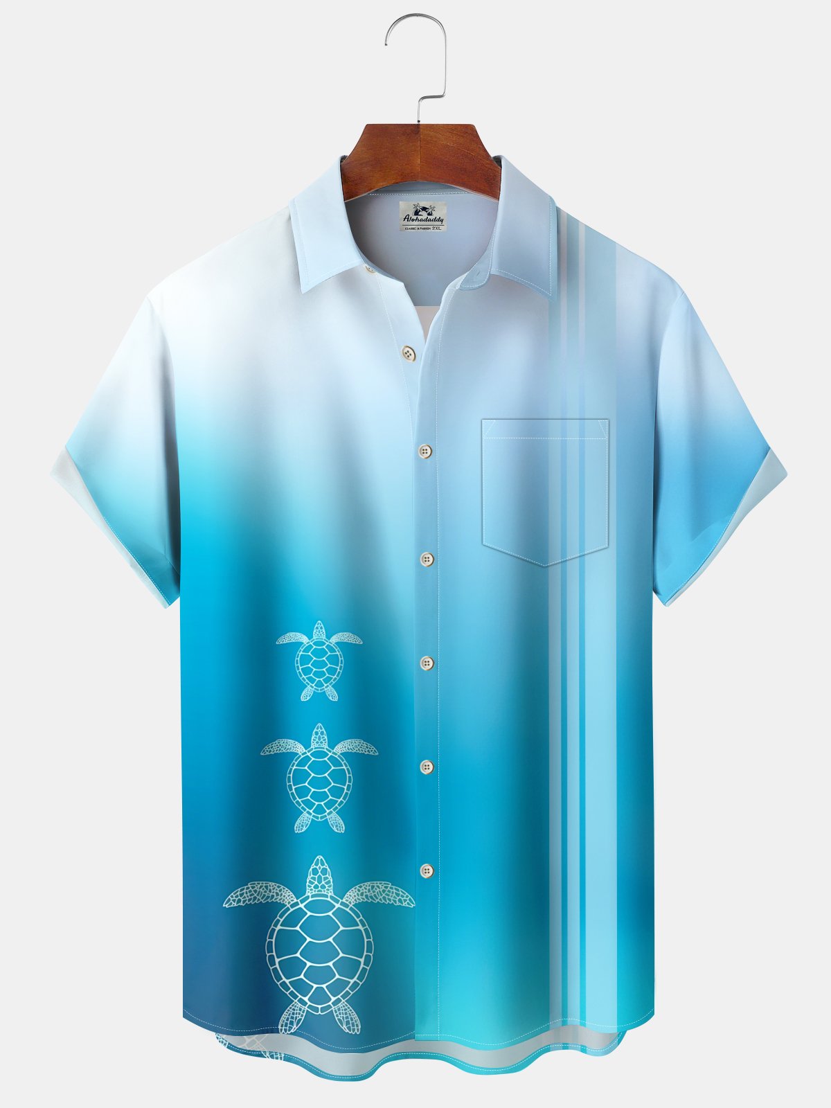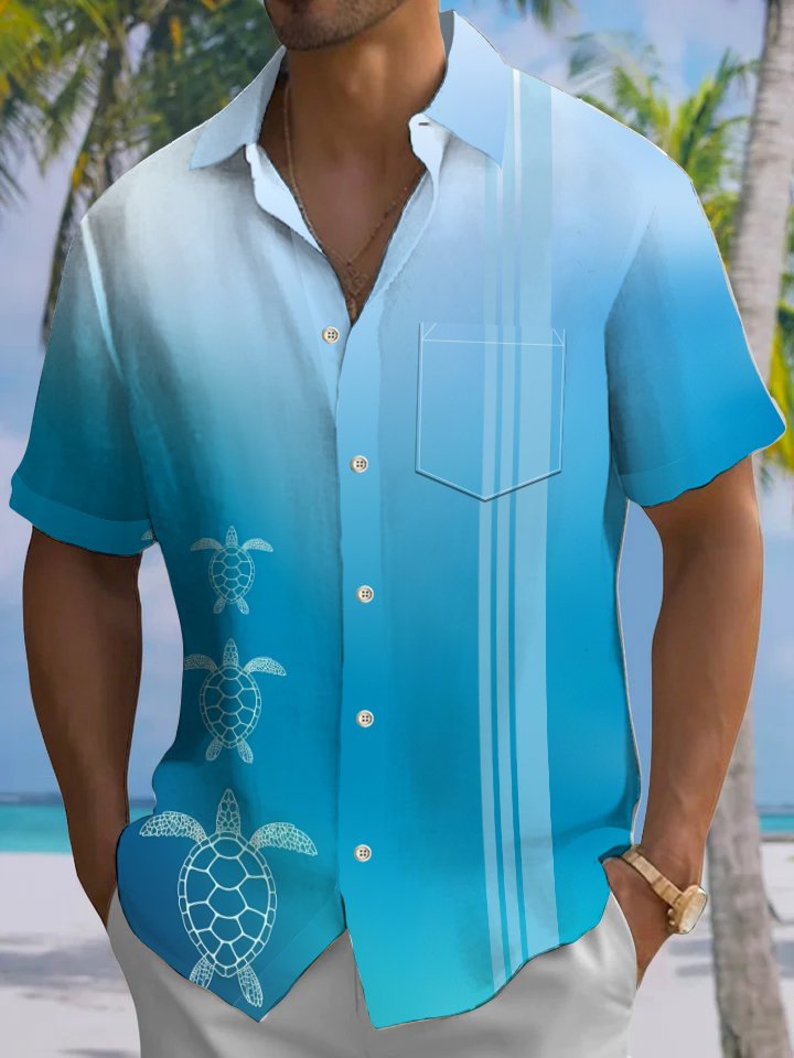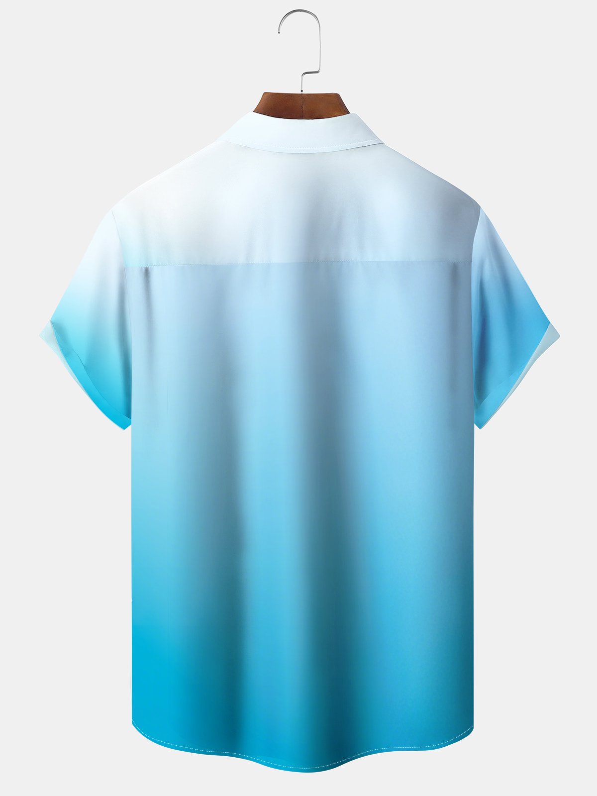 Alohadaddy® Casual Gradient Stripe Pockets Moisture Wicking Large Size Stretch Men's Short Sleeve Shirt