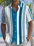 Alohadaddy® Casual Stripe Print Art Pocket Stretch Men's Short Sleeve Shirt Big & Tall