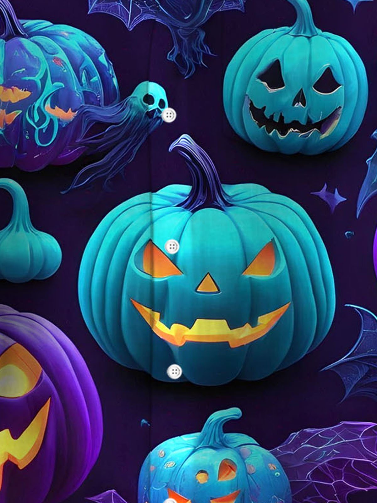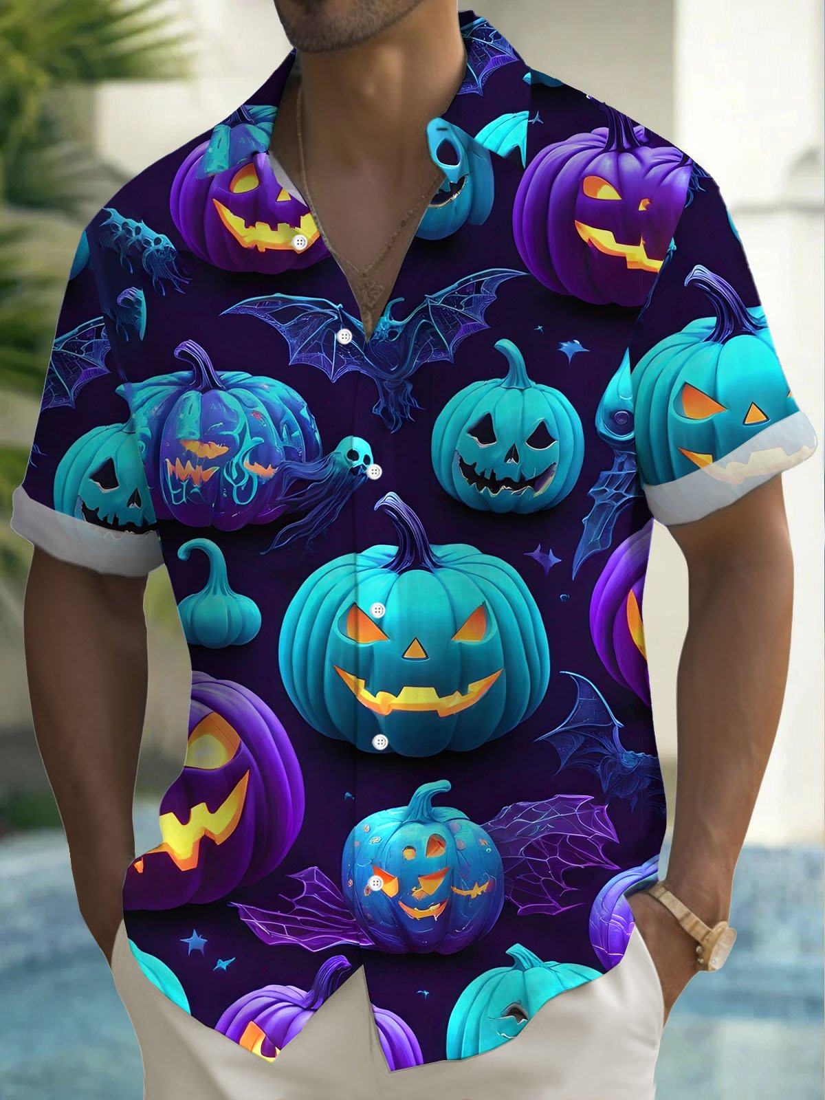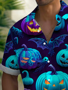 Alohadaddy® Halloween Pumpkin Art Print Men's Button Pocket Short Sleeve Shirt Big & Tall