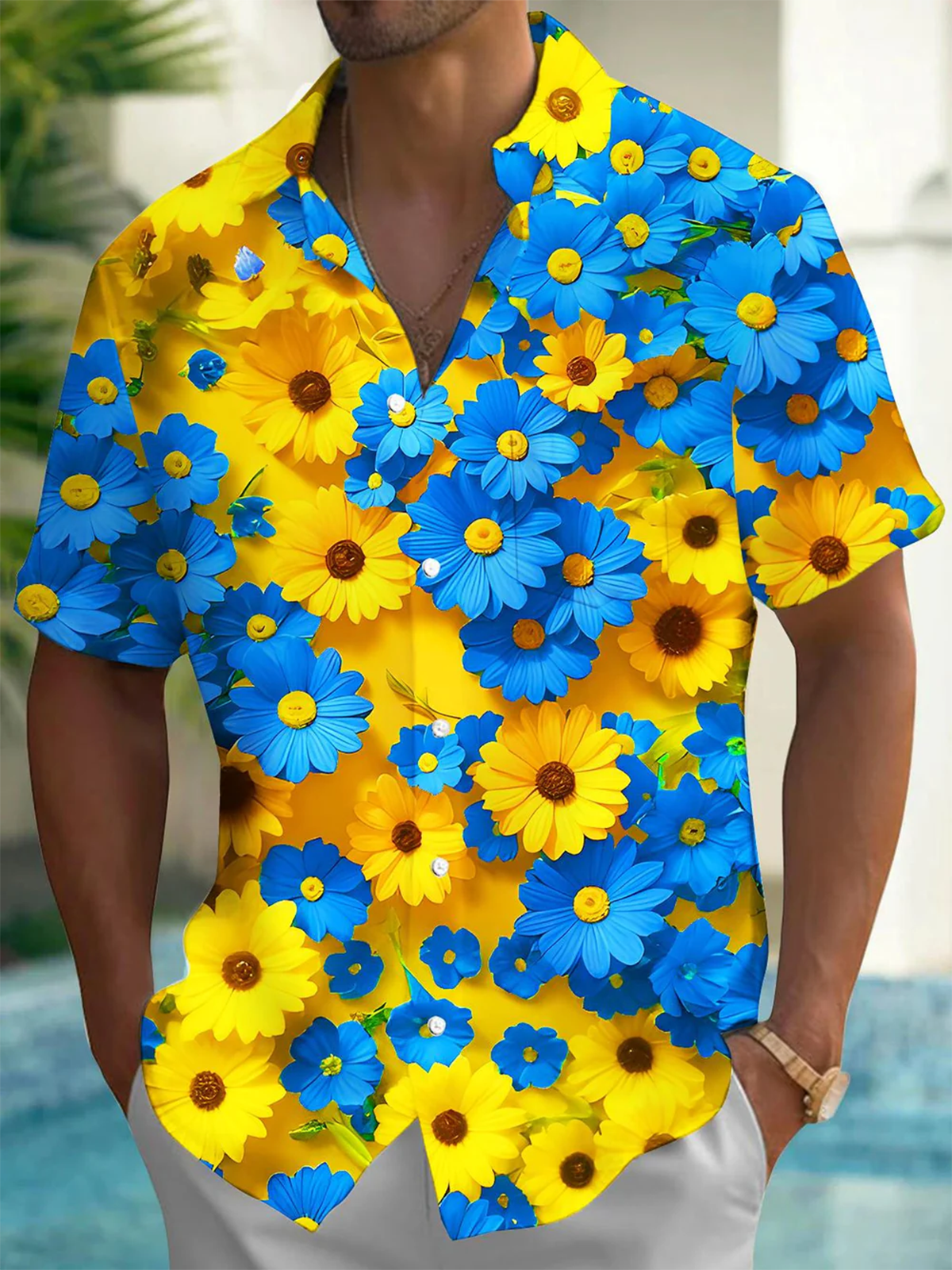 Alohadaddy® Hawaiian Floral Art Print Moisture Wicking Men's Short Sleeve Shirt Big & Tall